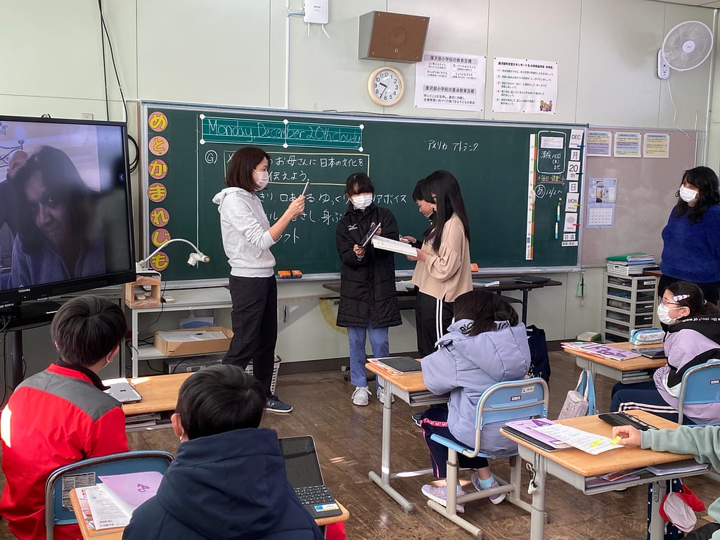 メガナ先生のご家族に参加していただき、本校5年生が日本の文化を伝えました。