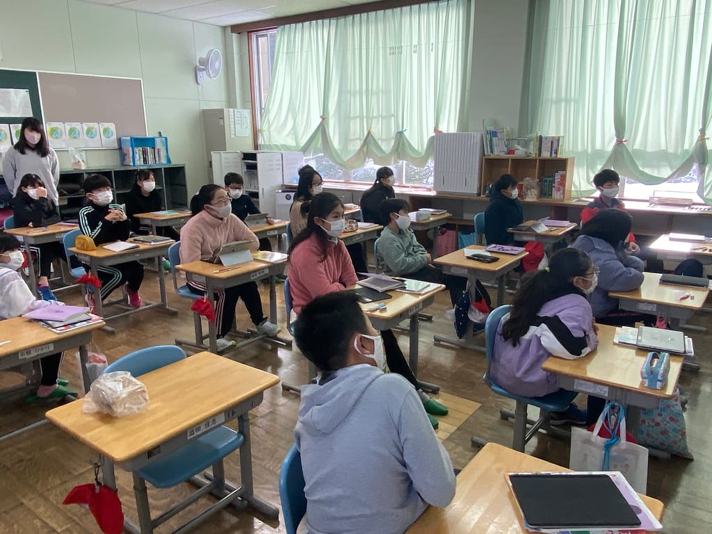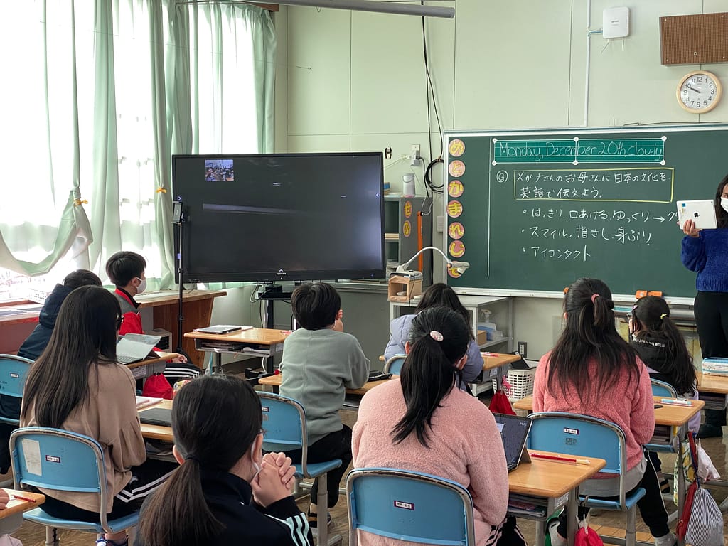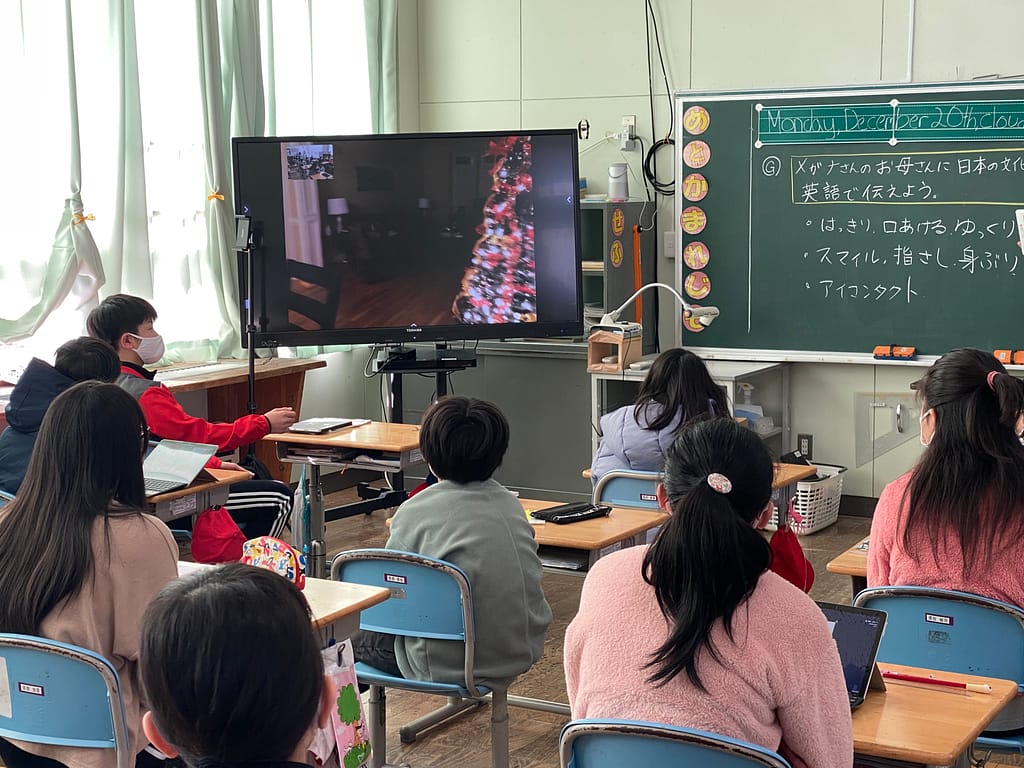 本日、5年生の外国語授業で、ALTのメガナ先生の実家があるアメリカ・アトランタとの遠隔学習を行いました!