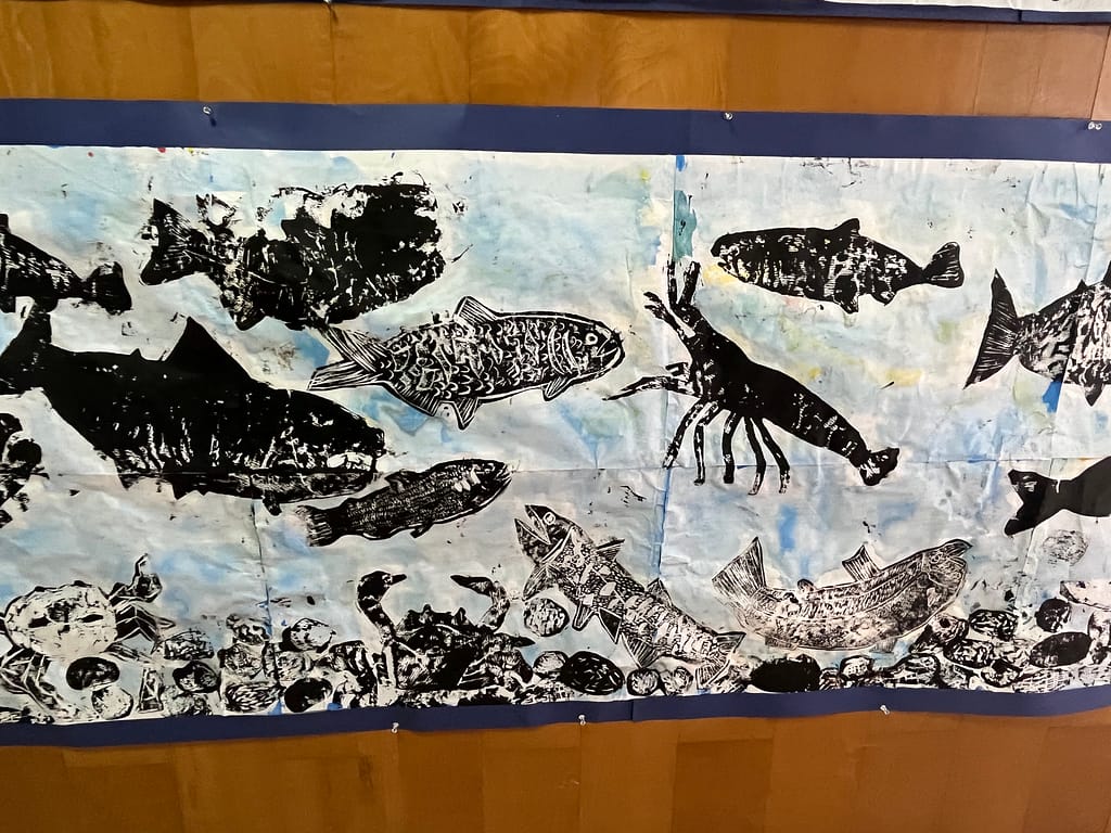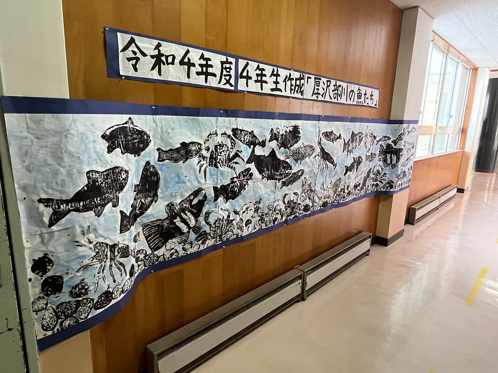 写真にもある通り「厚沢部川の魚たち」という作品です!