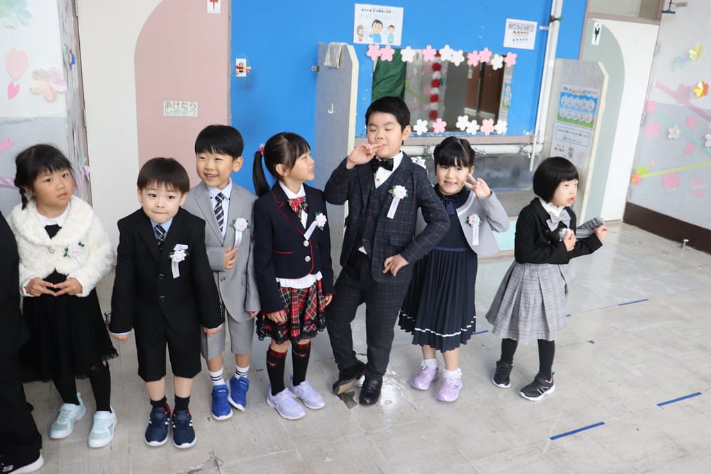 入場前に廊下で整列しているところを撮影していたら元気にポーズをとってくれました。