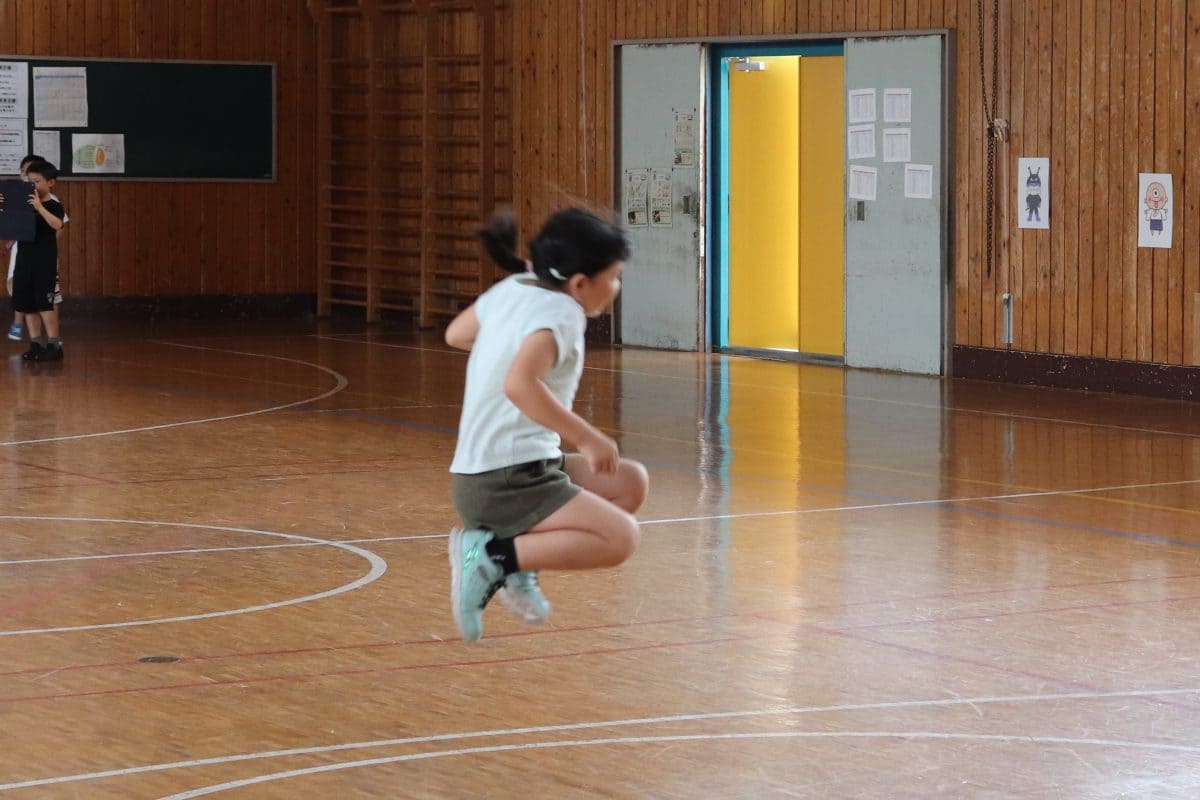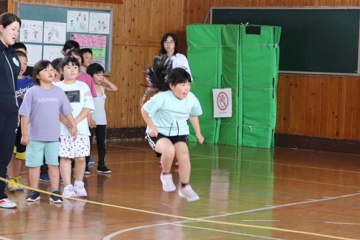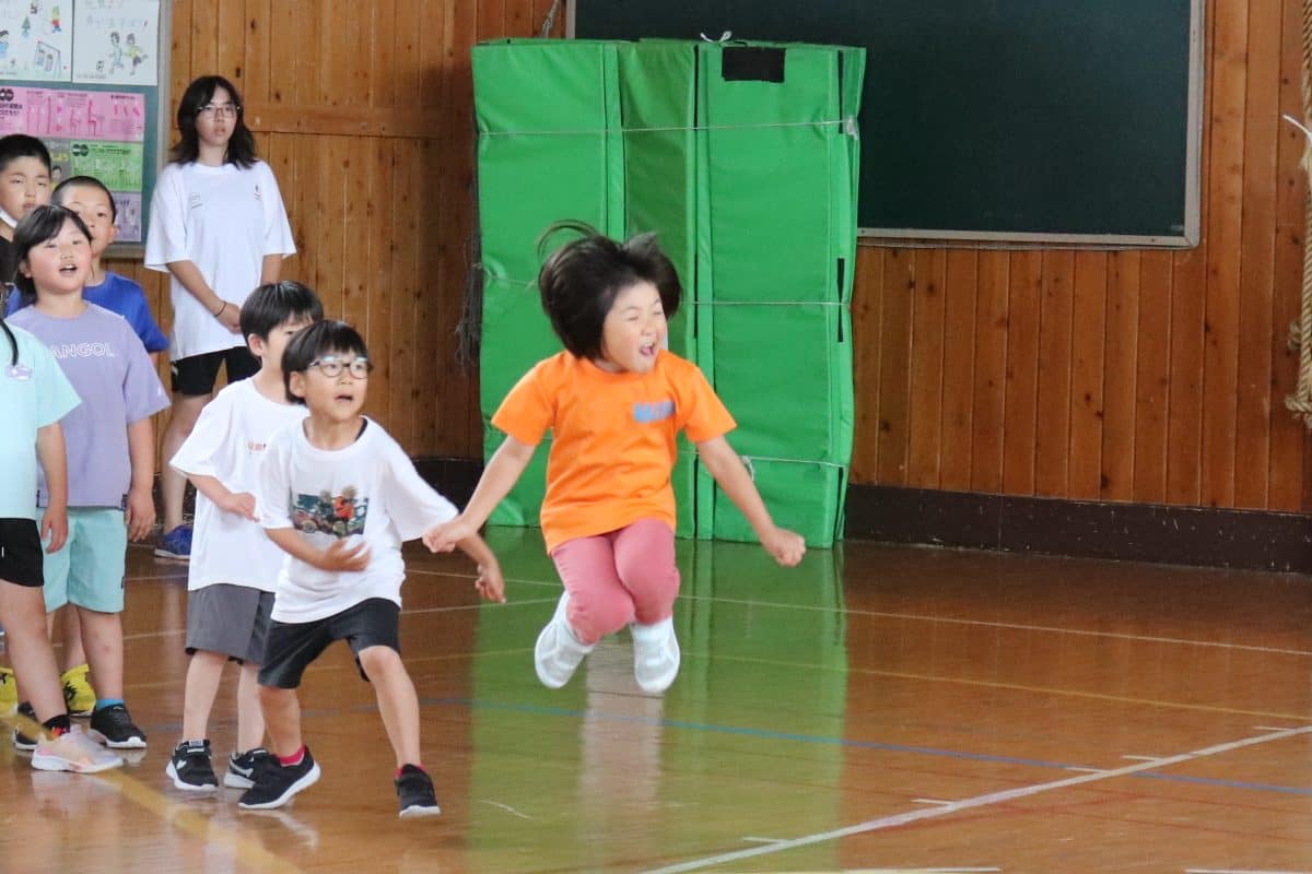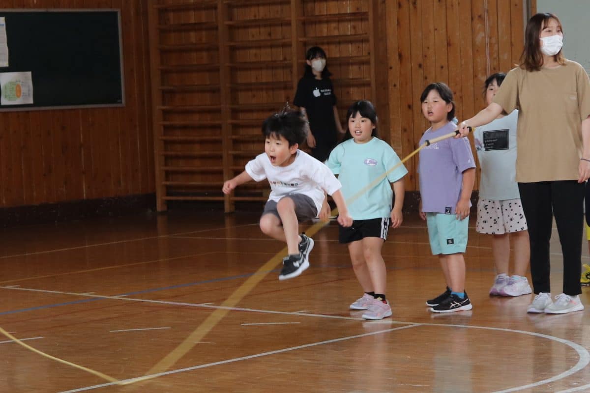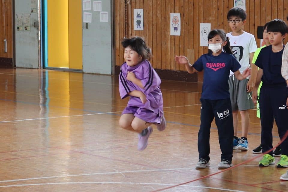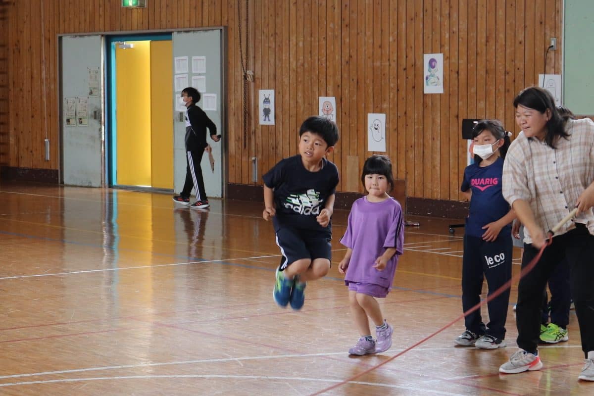 ウサギ班・コアラ班による体育館でのおらいもロープジャンプです。