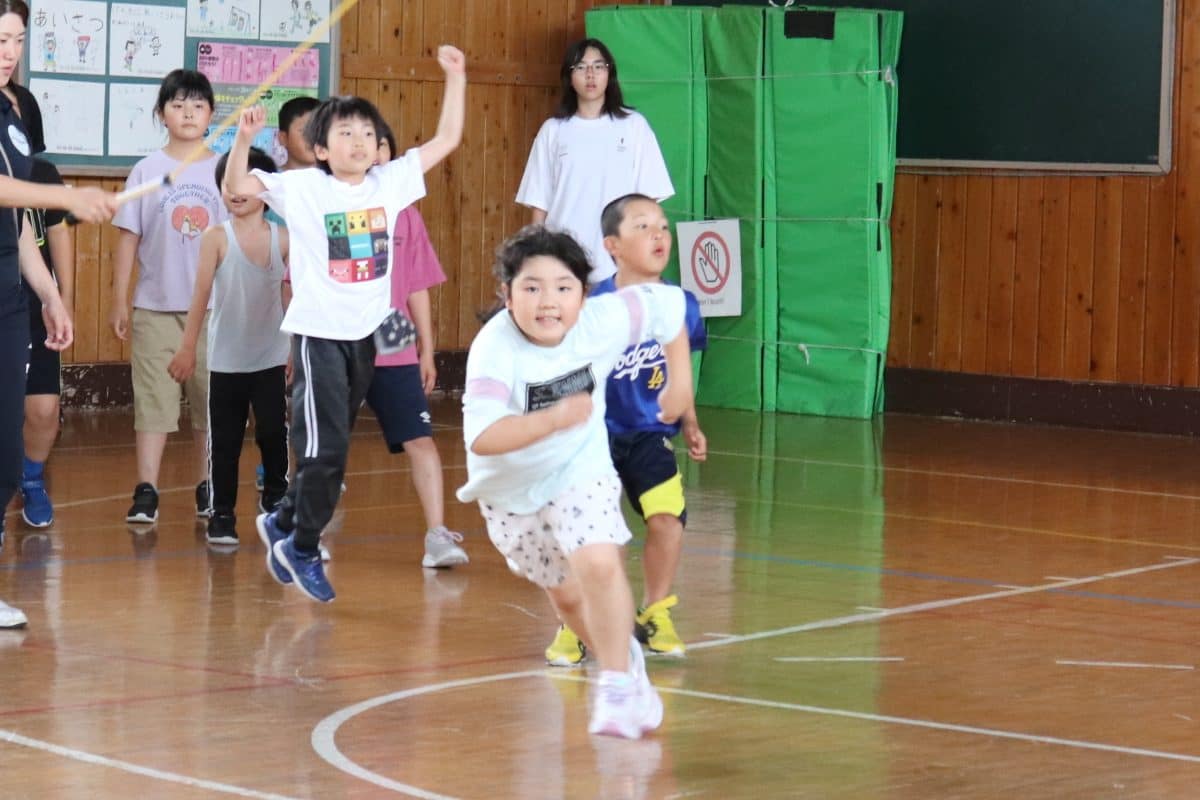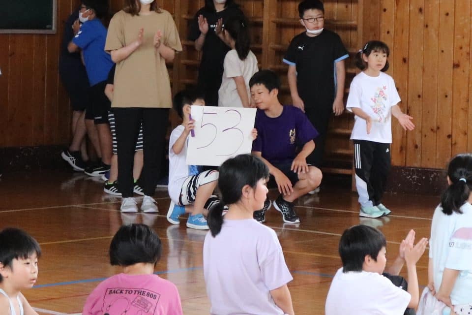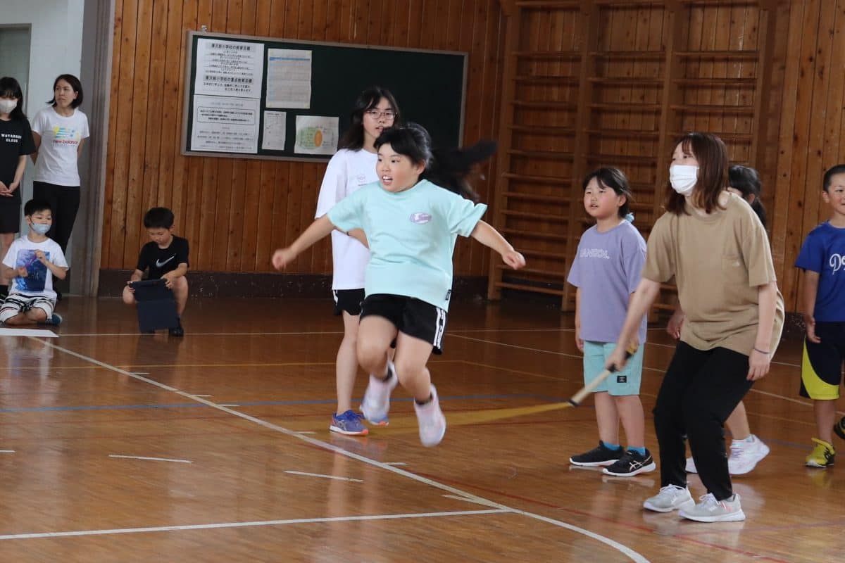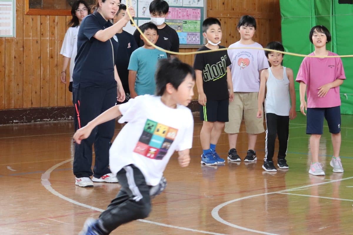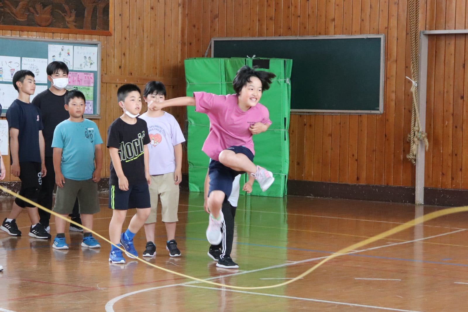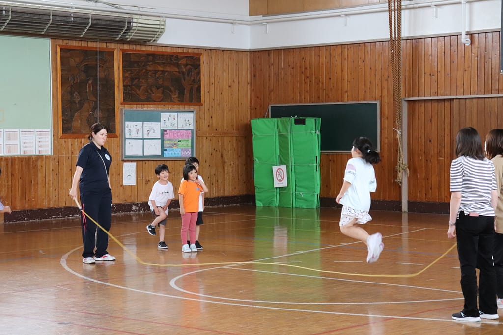 ウサギ班・コアラ班による体育館でのおらいもロープジャンプです。