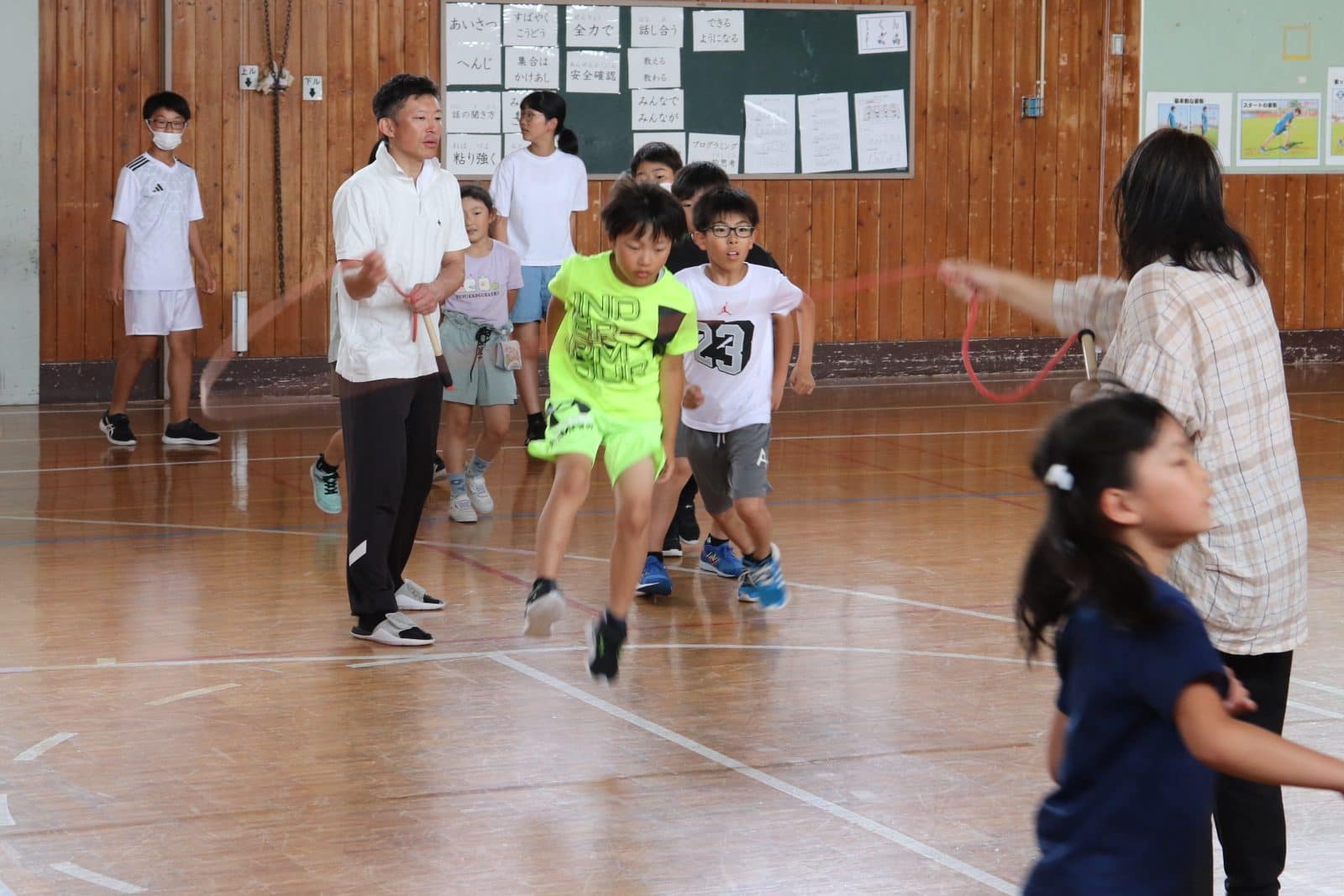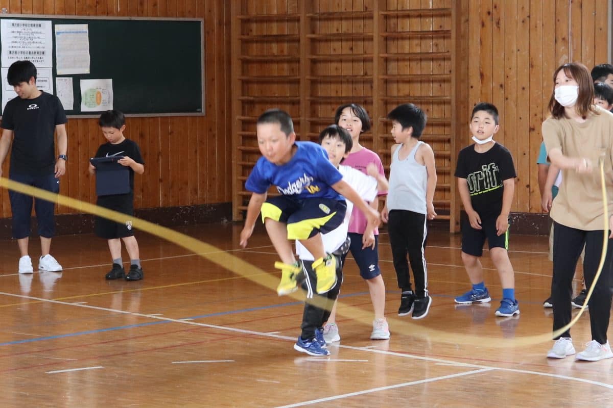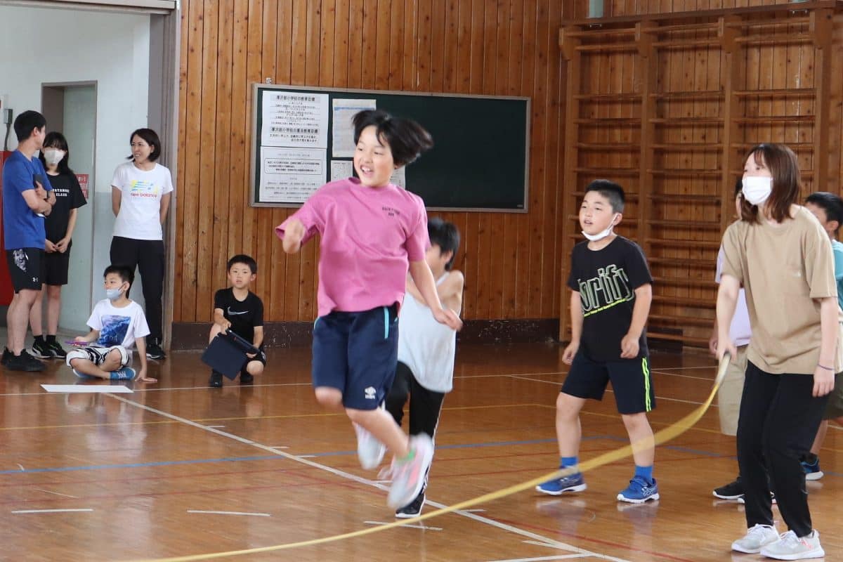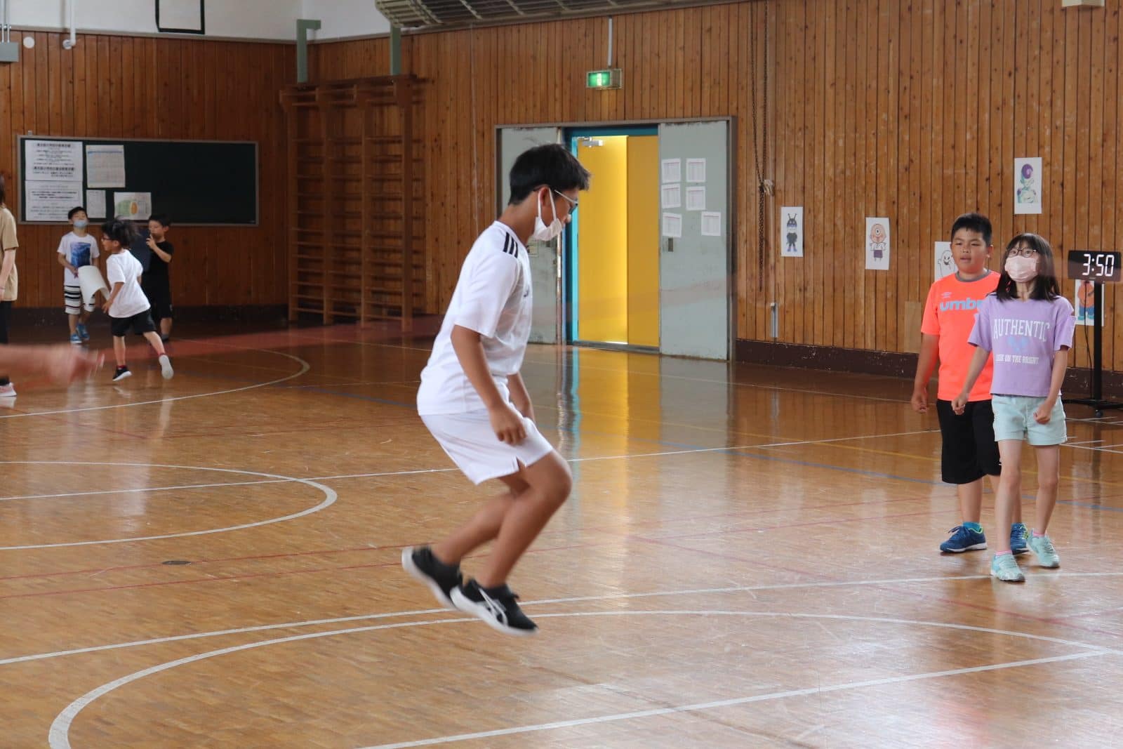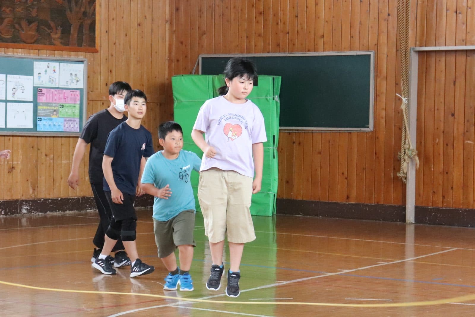ウサギ班・コアラ班による体育館でのおらいもロープジャンプです。
