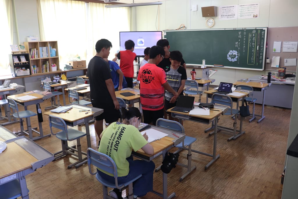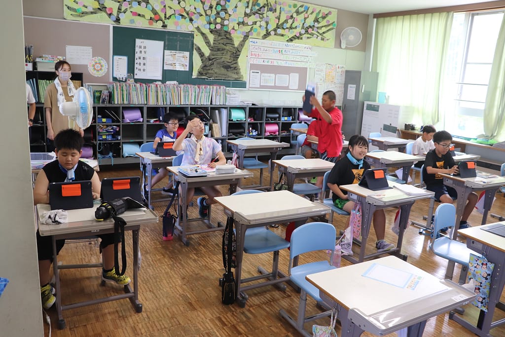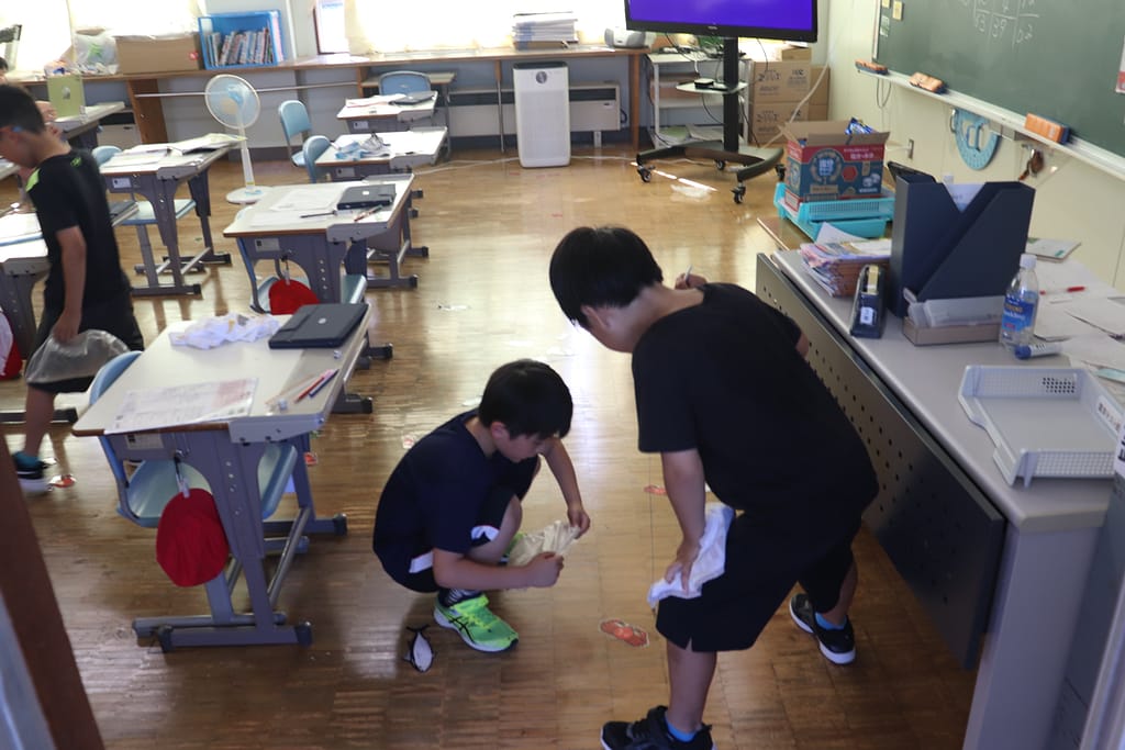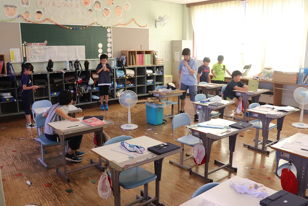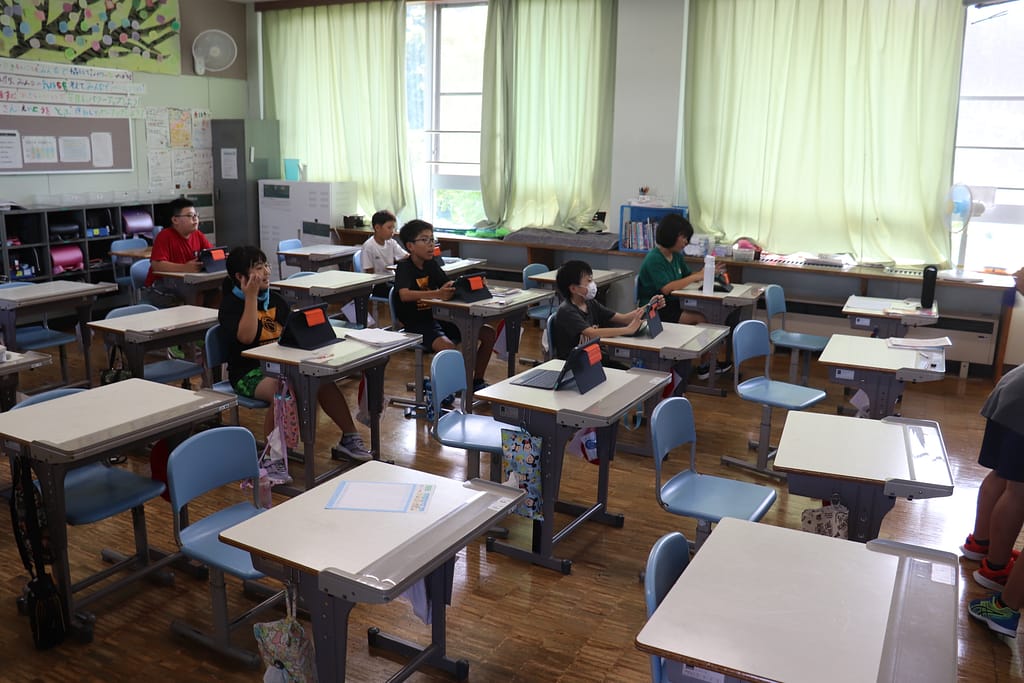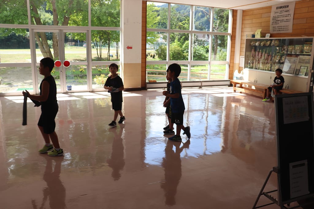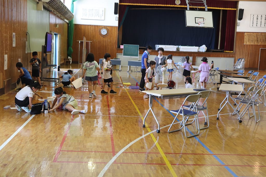 暑い中ですがそれぞれ教室や体育館、児童ホールでまったりと過ごしていました。
