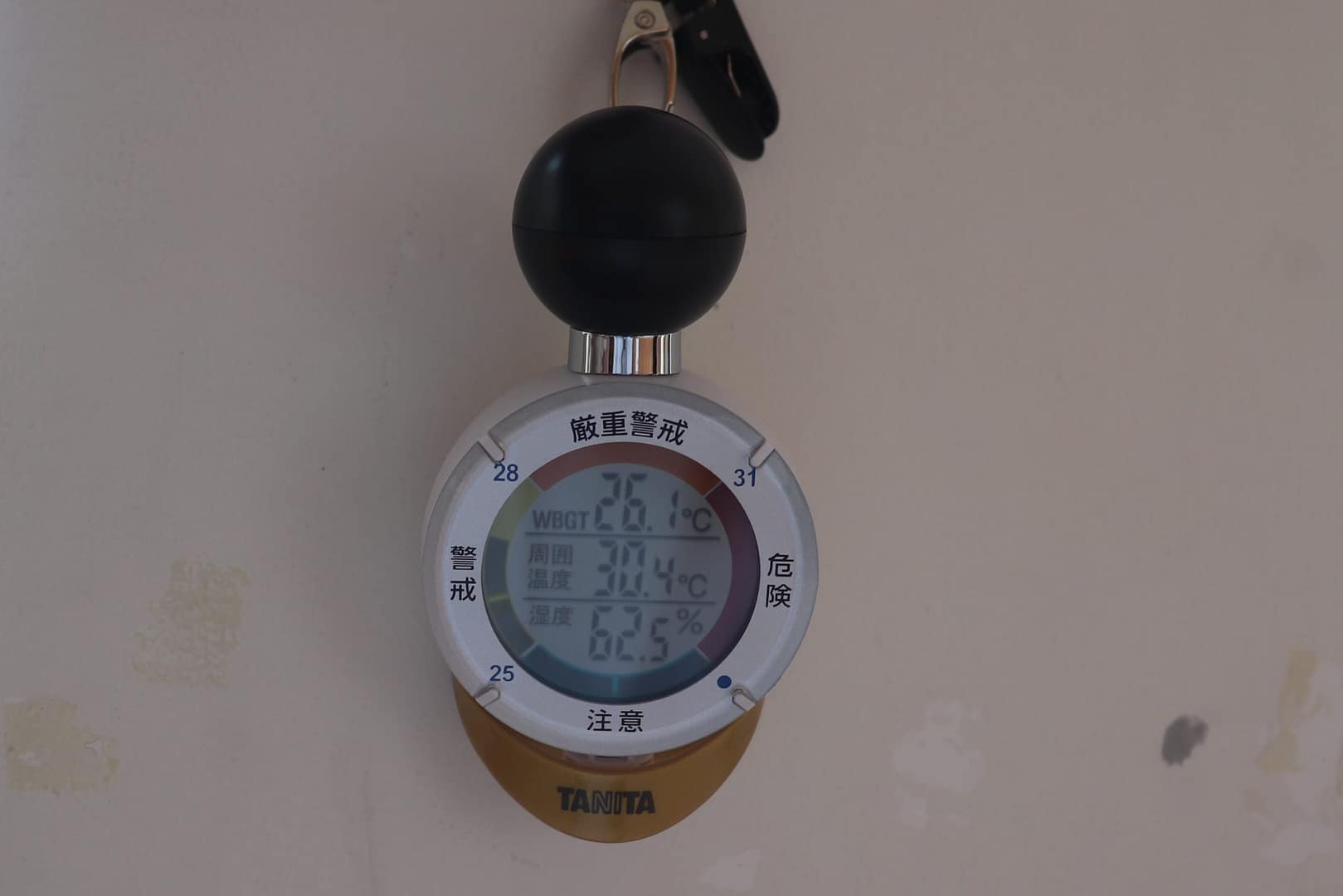 熱中症予防指針にあわせて、熱中症の危険度をアラーム音と数値でお知らせくれます。