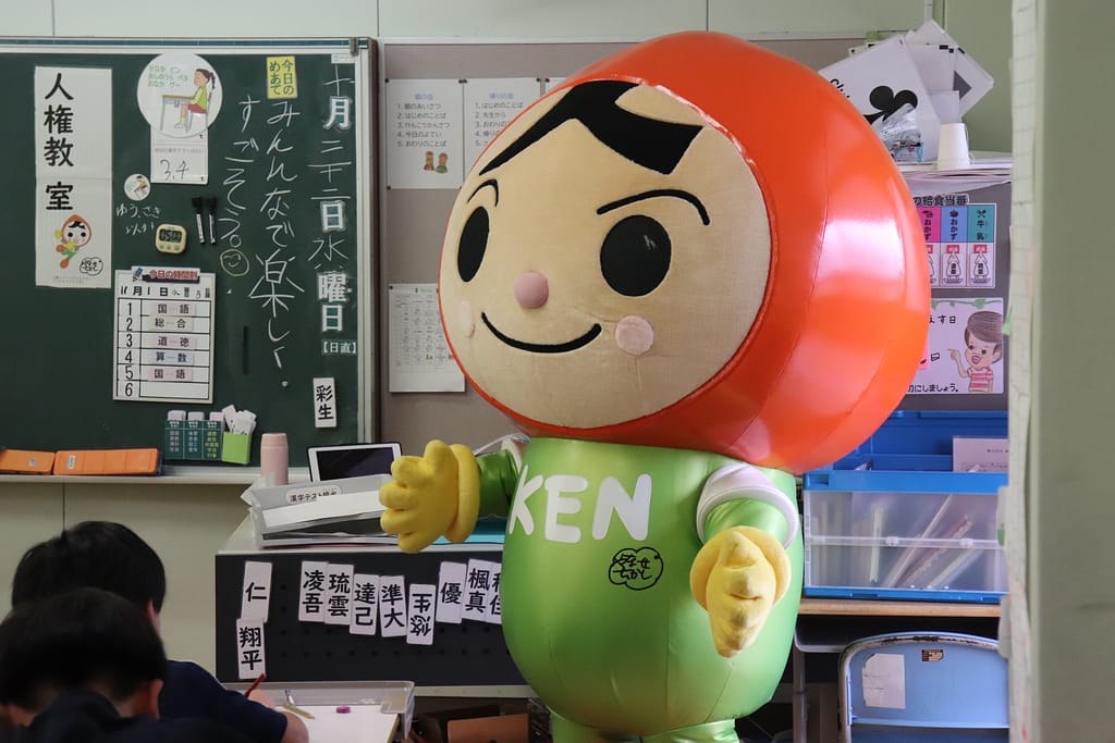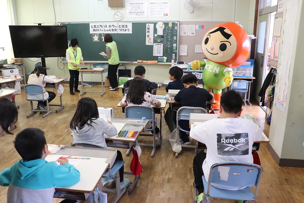 講師に人権擁護委員の太田さん、谷口さん、竹中さんに、ゲストには人KENまもる君にお越しいただきました。