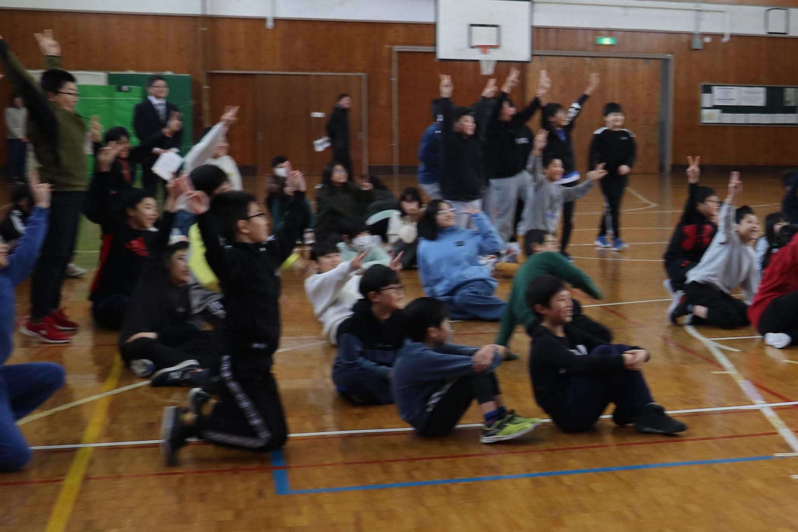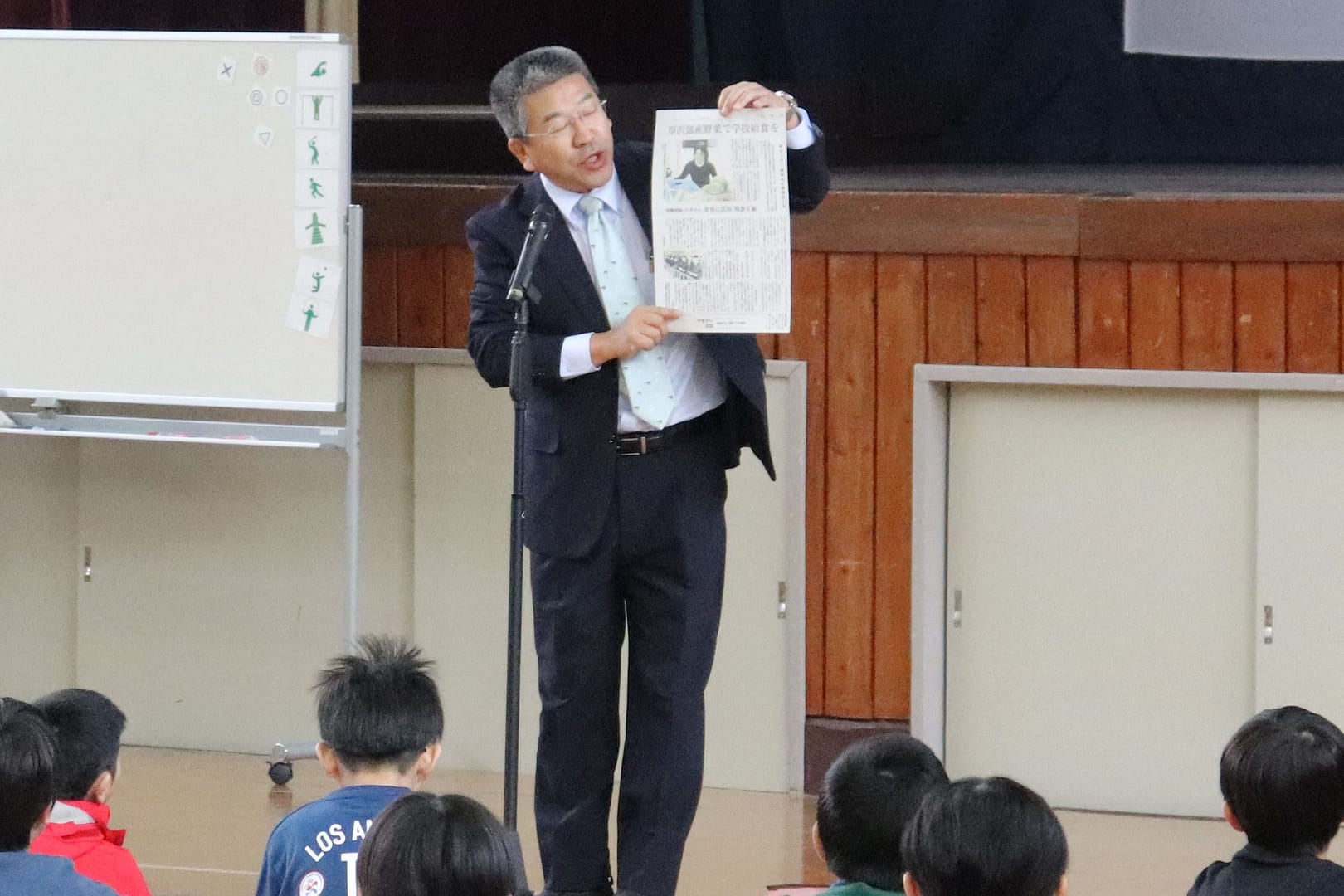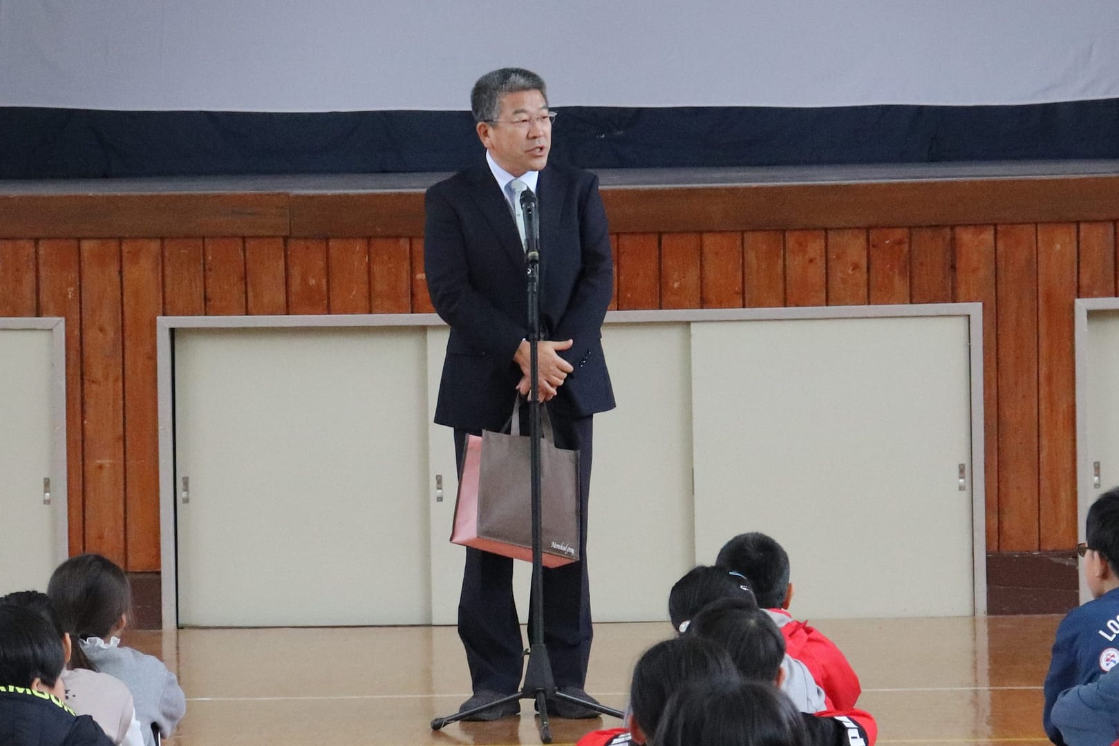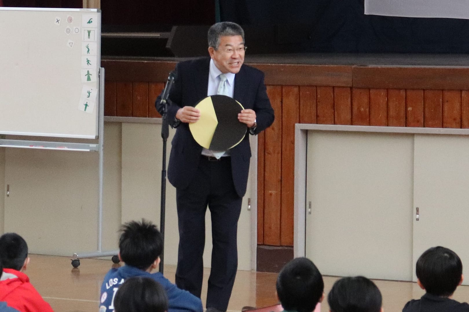 終業式後、湯田サンタさんが登場しました。