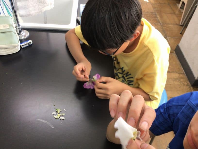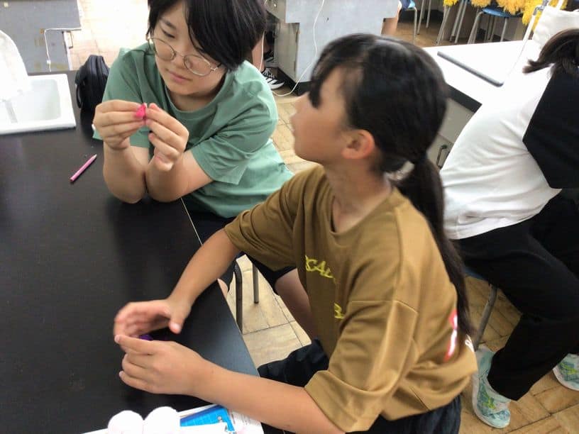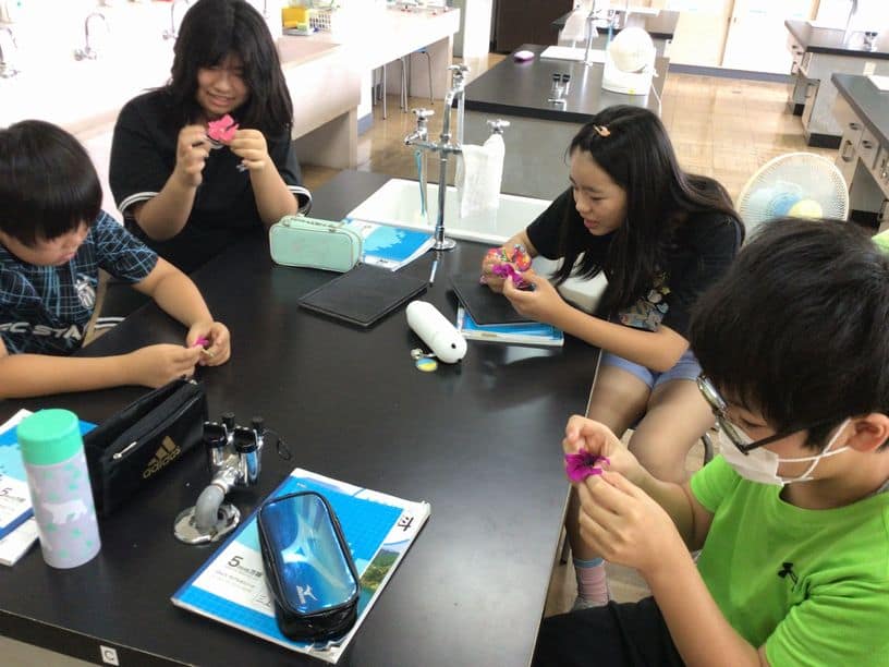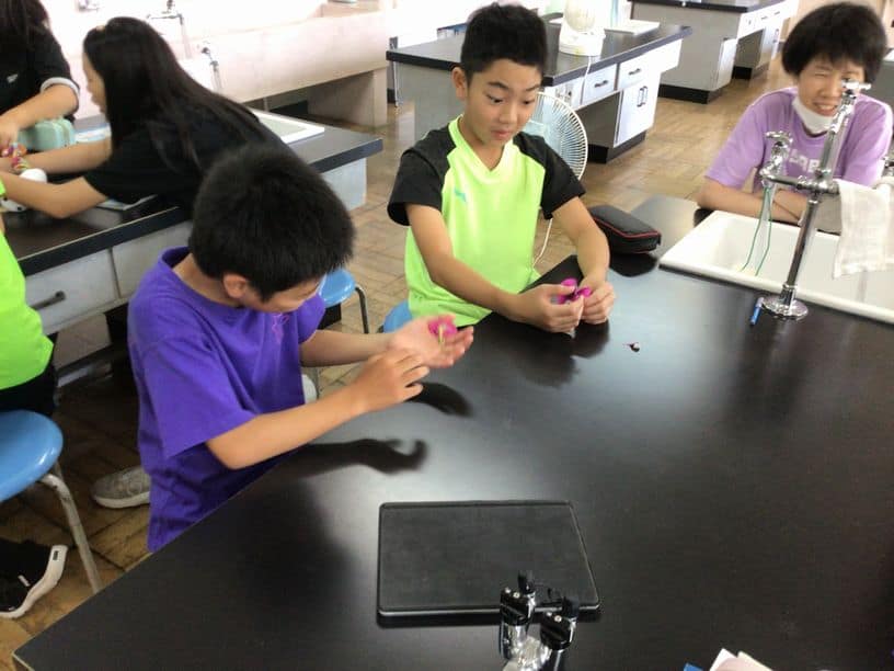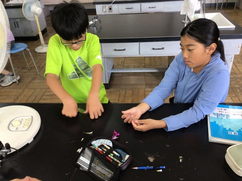 日常・平常の教科学習がしっかり行われていることを先日「ごはんとみそしる」に例えました。本校では理科専科教員の配置のおかげで、準備に時間のかかる理科授業が他教科同様「ごはんとみそしる」のように毎日行われています。終業式前日(7月24日)の慌ただしい中でも、写真のように楽しい観察・実験が5年生で行われました。