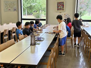 本日は厚沢部も函館も雨模様です。これで少しは涼しくなるといいのですが。 元気に朝食を食べて 部屋の整理整頓をして ペン立て作りをしています。 2日目も元気に楽しく過ごしてください。
