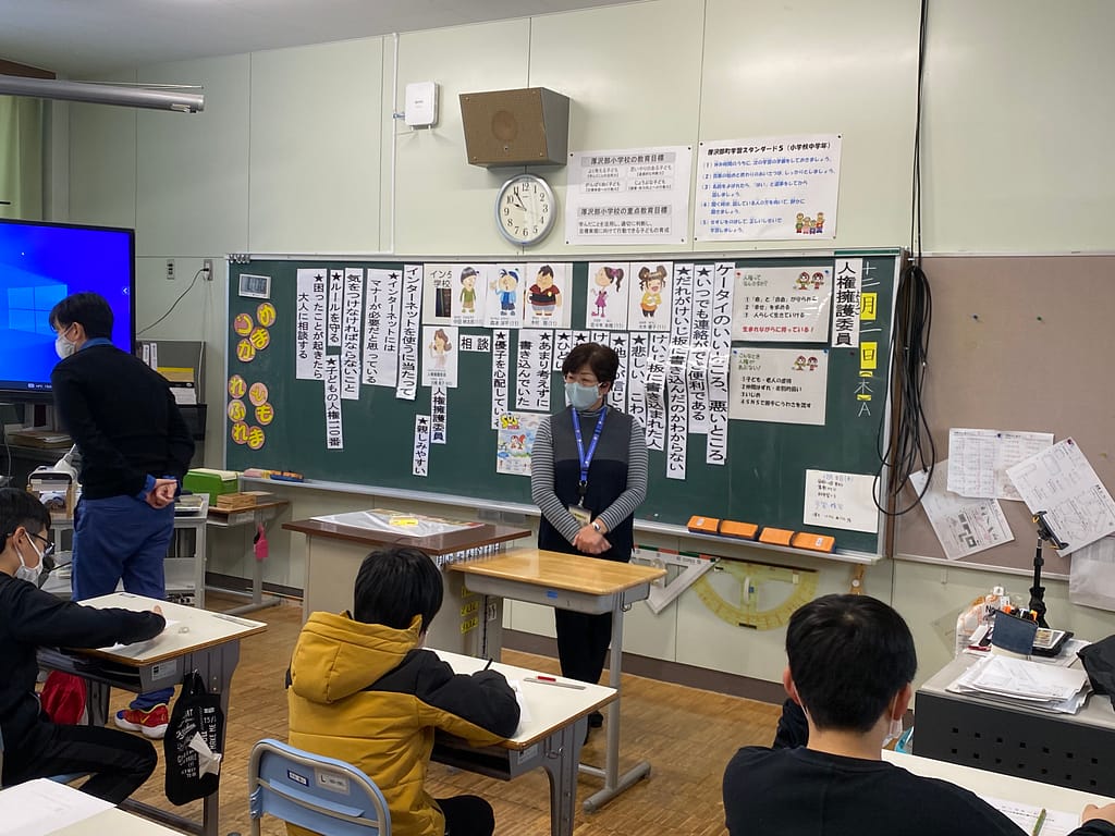 太田様からの「どんな気持ちになった?」という問いかけに対し、「心が痛かった」「言いたくなかった」という答えが児童からでました。この学習を通して、人の気持ちを考える、すなわち「人権」を尊重できるような人間に近づいたと感じました。