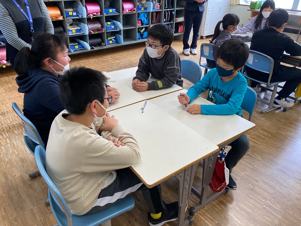 3年生は「ちくちく言葉」と「ふわふわ言葉」について学びました。班ごとに分かれ、思いつく限りの言葉を挙げていたらどの班も「ちくちく言葉」の方が多い結果に…