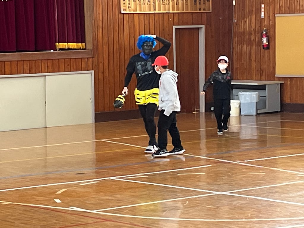 体育の授業のため体育館で待機していた3年生の元へ、鬼がやってきました!!
