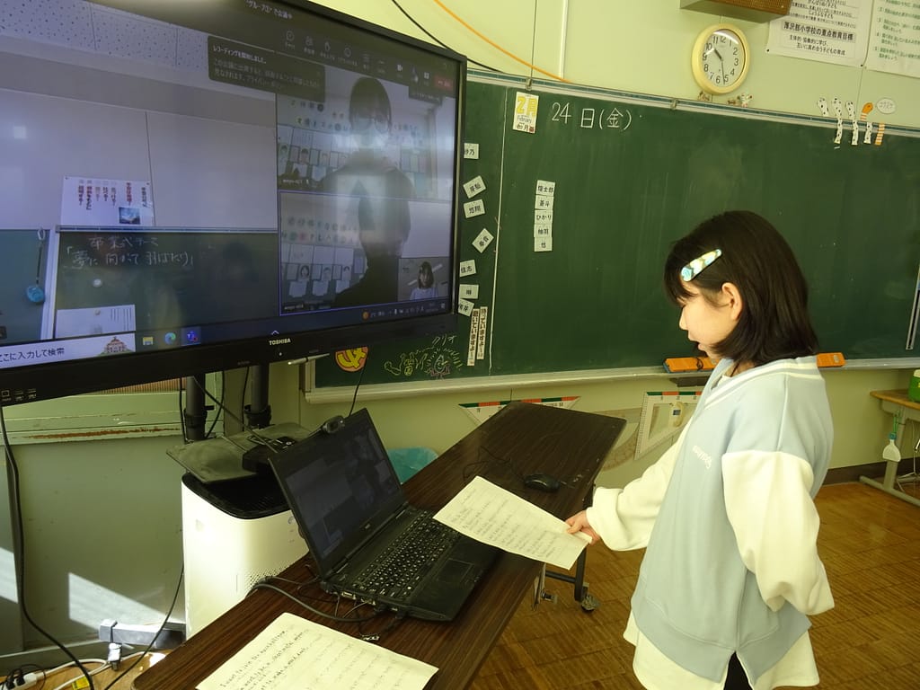 先週の金曜日の6年生の外国語の時間に、青苗小学校と遠隔で交流しました!