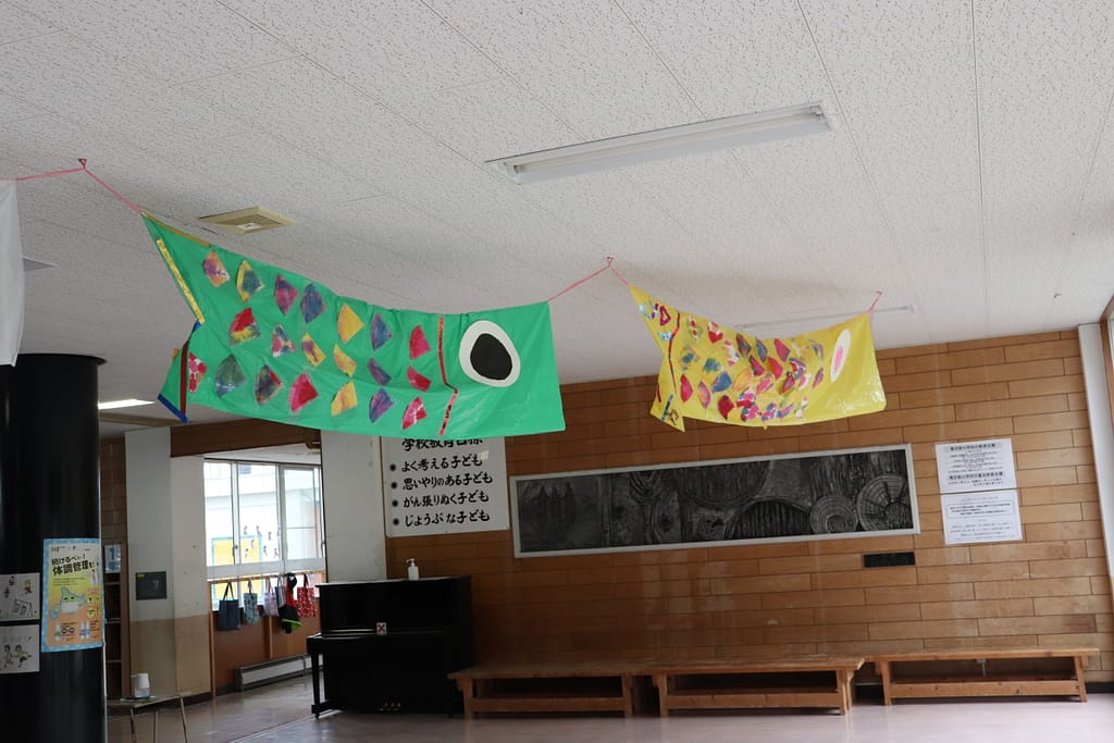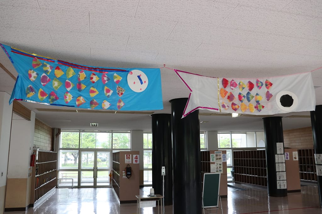 2年生が作ったもので、とてもかわいいこいのぼりたちです。