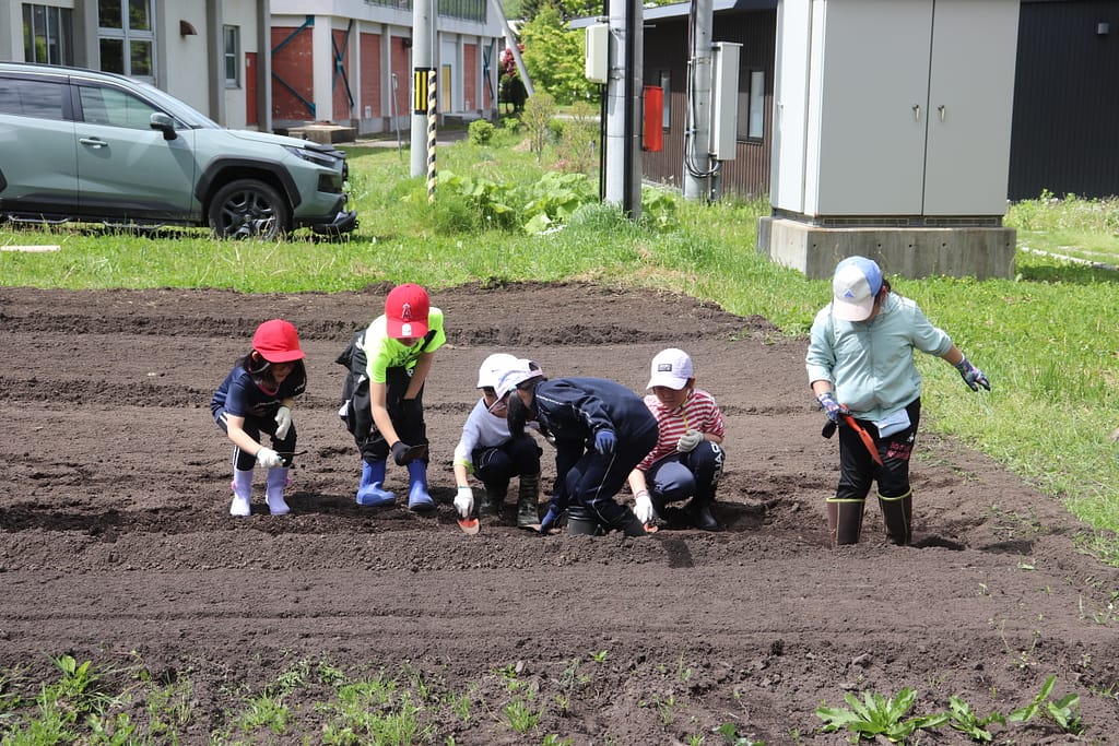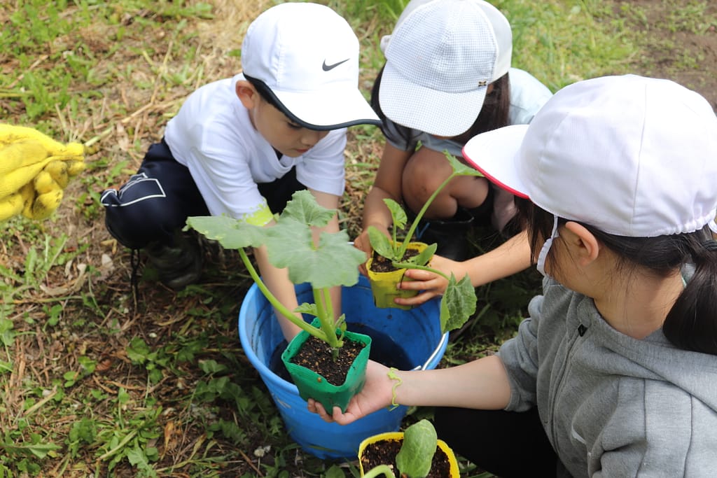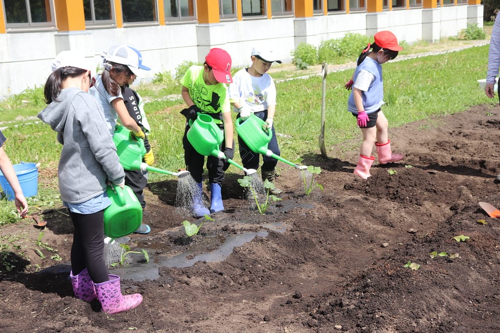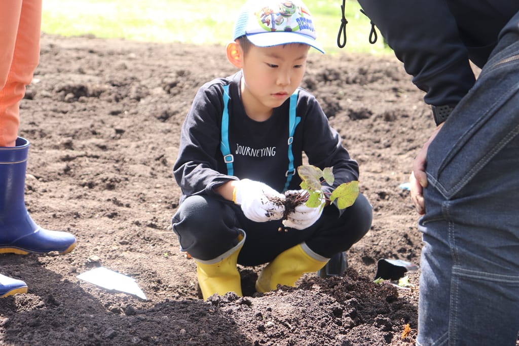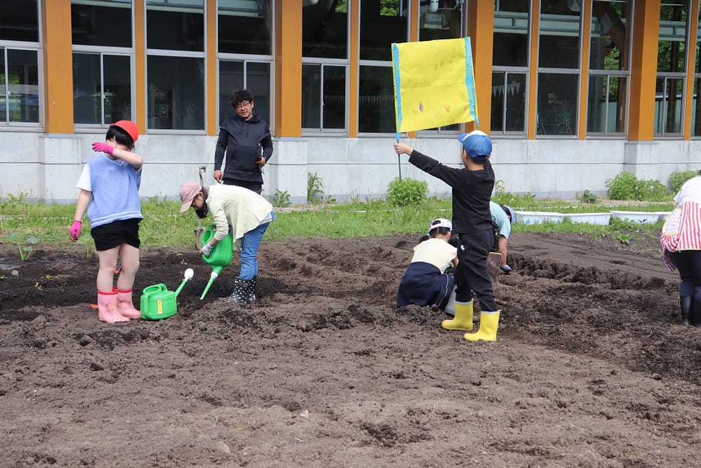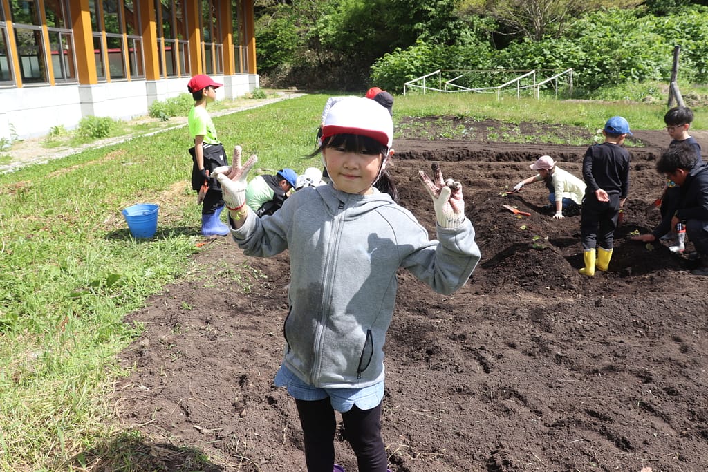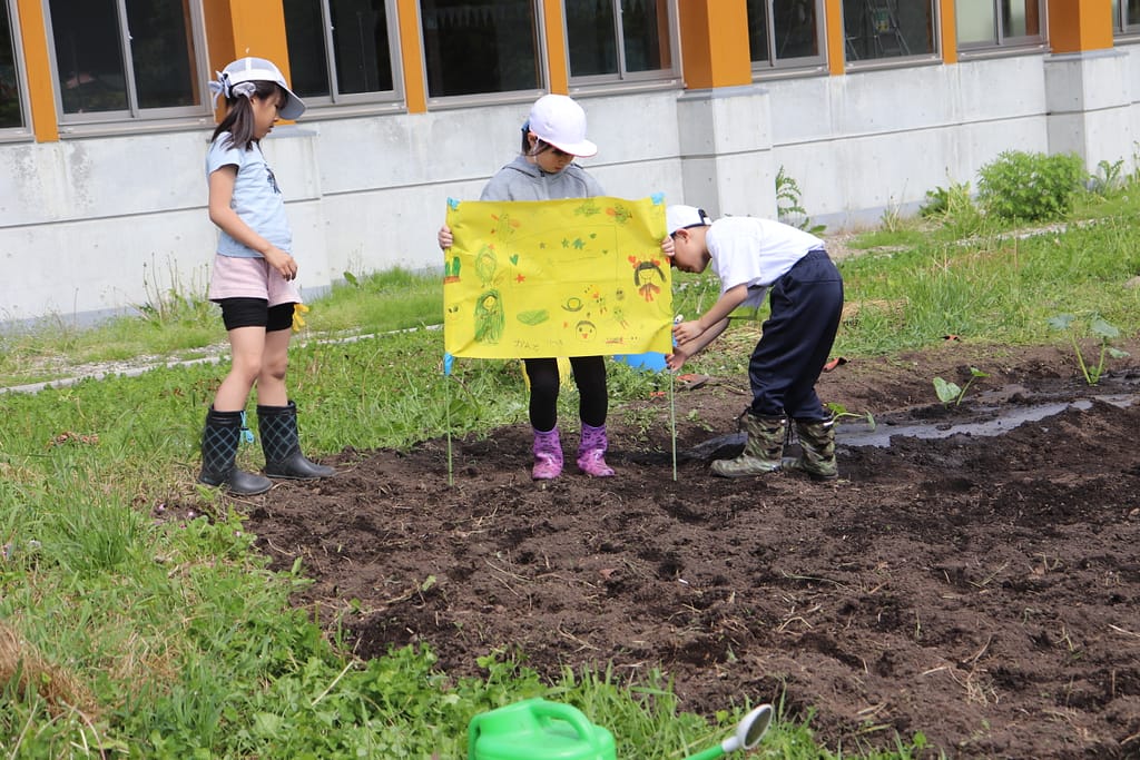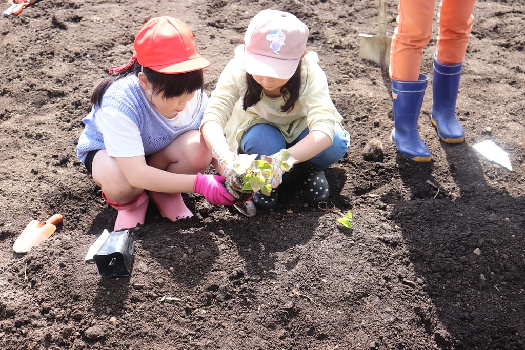 昨日、児童の保護者であり、農業経営者の相良様にご協力いただき、2年生の学級園にを植えました。
