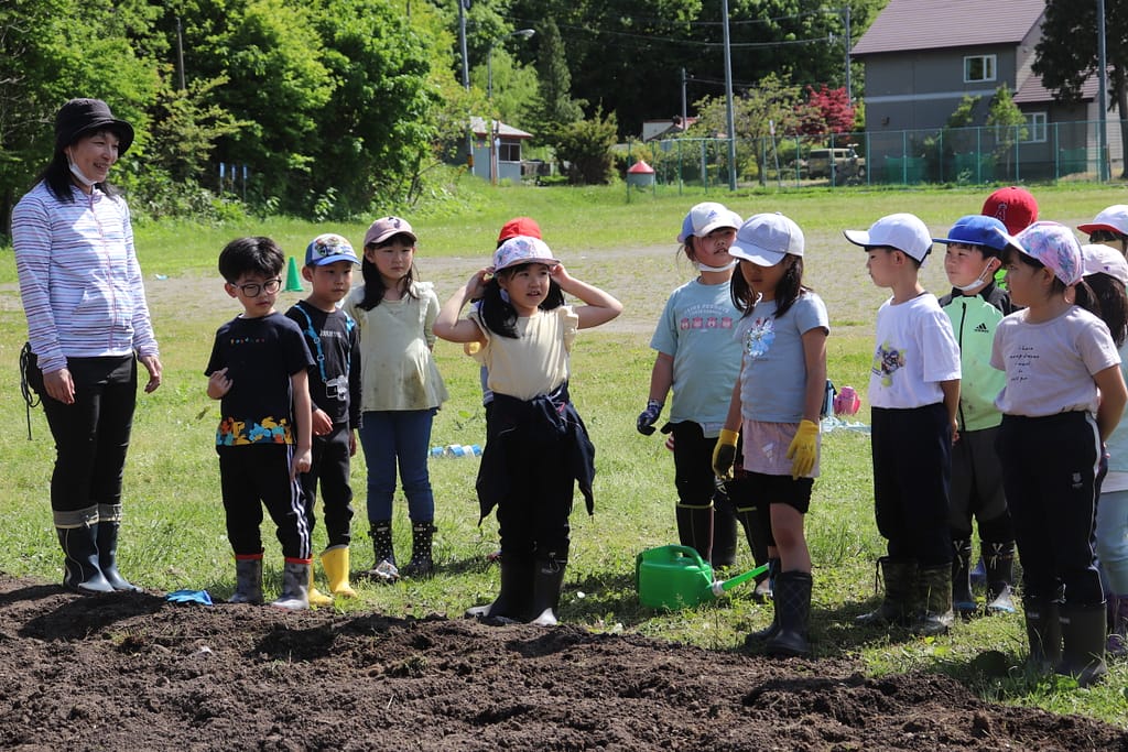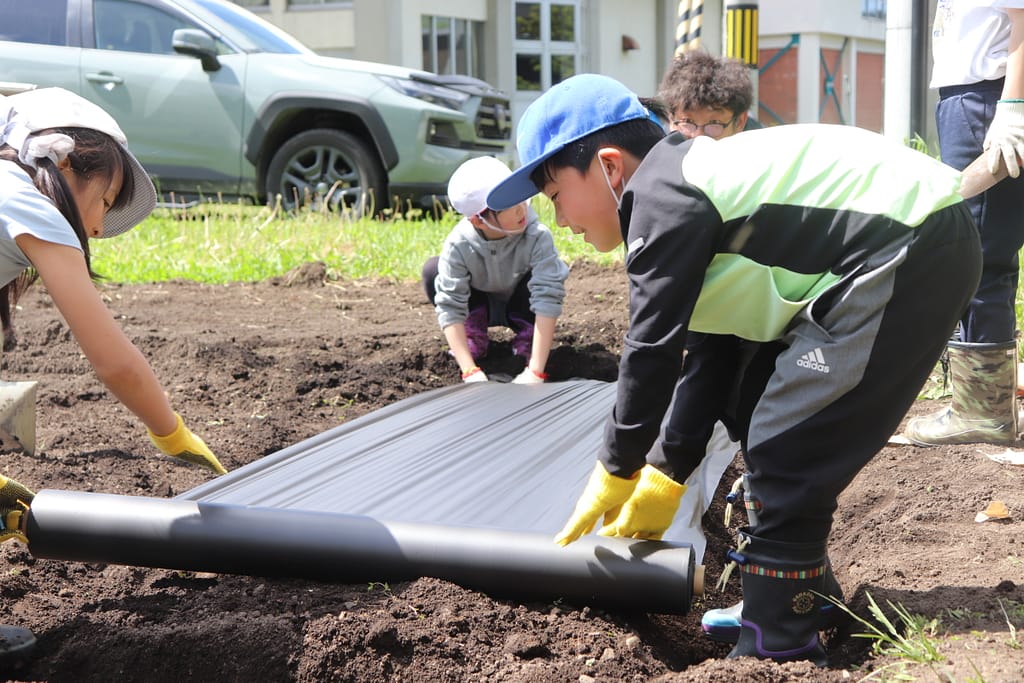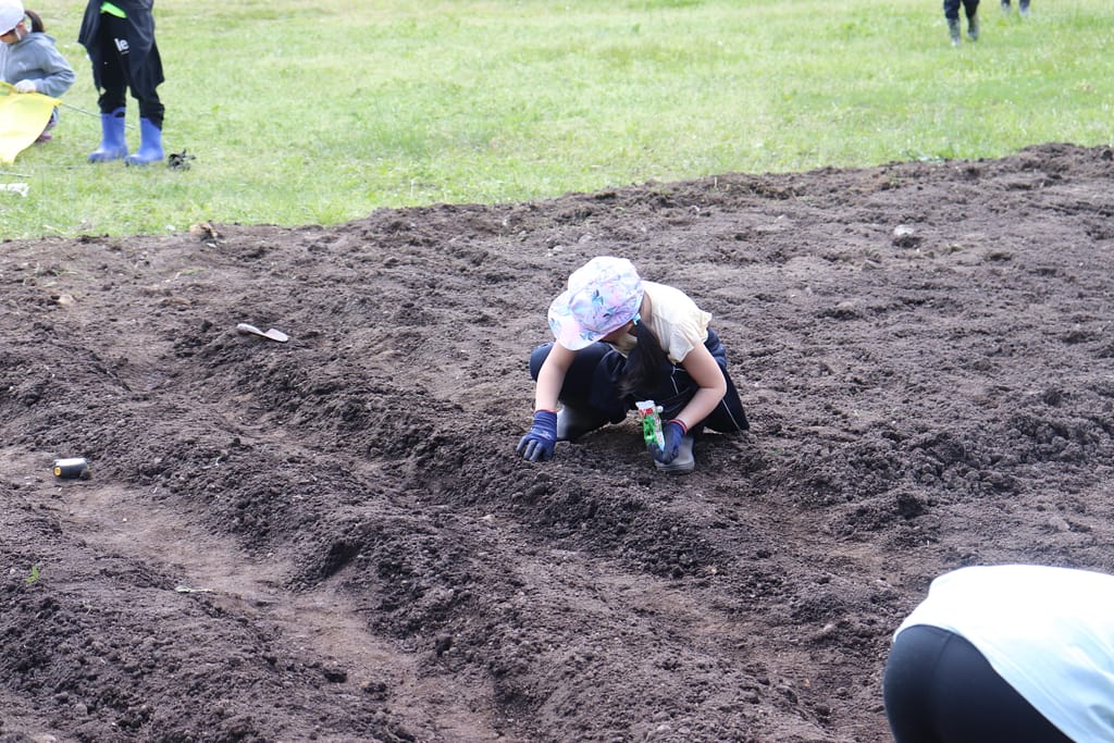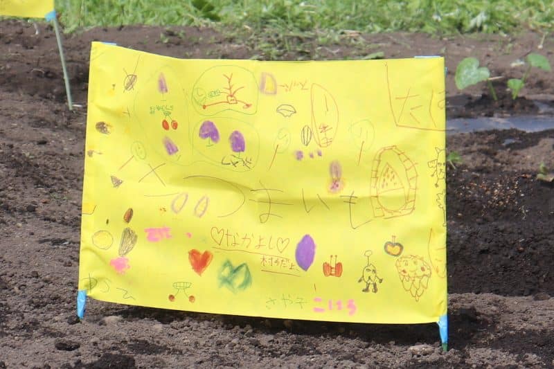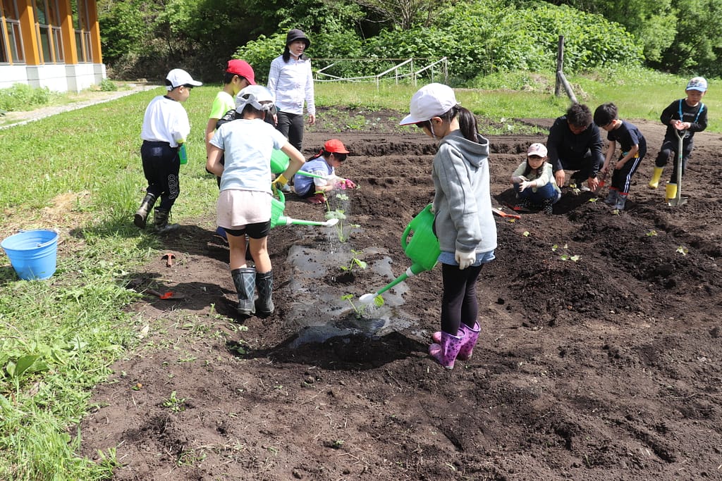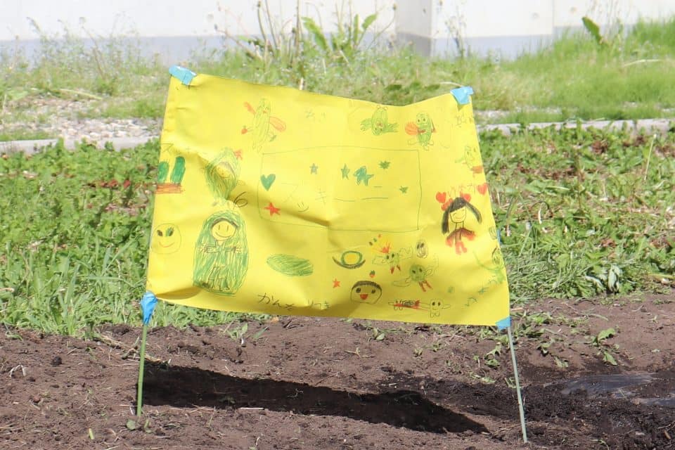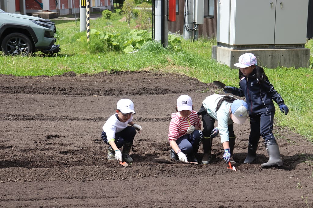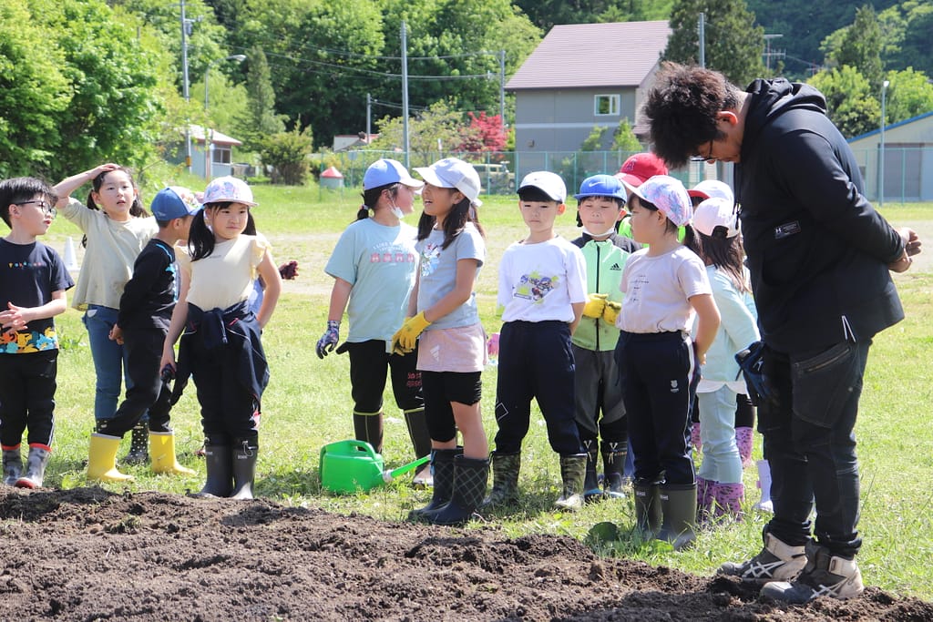昨日、児童の保護者であり、農業経営者の相良様にご協力いただき、2年生の学級園にを植えました。