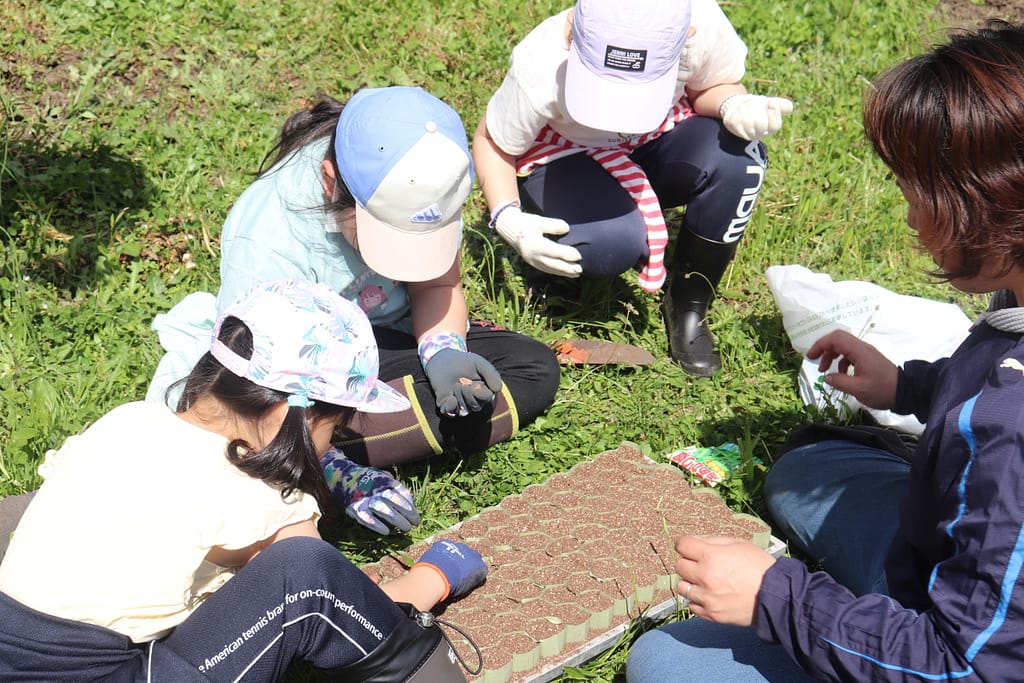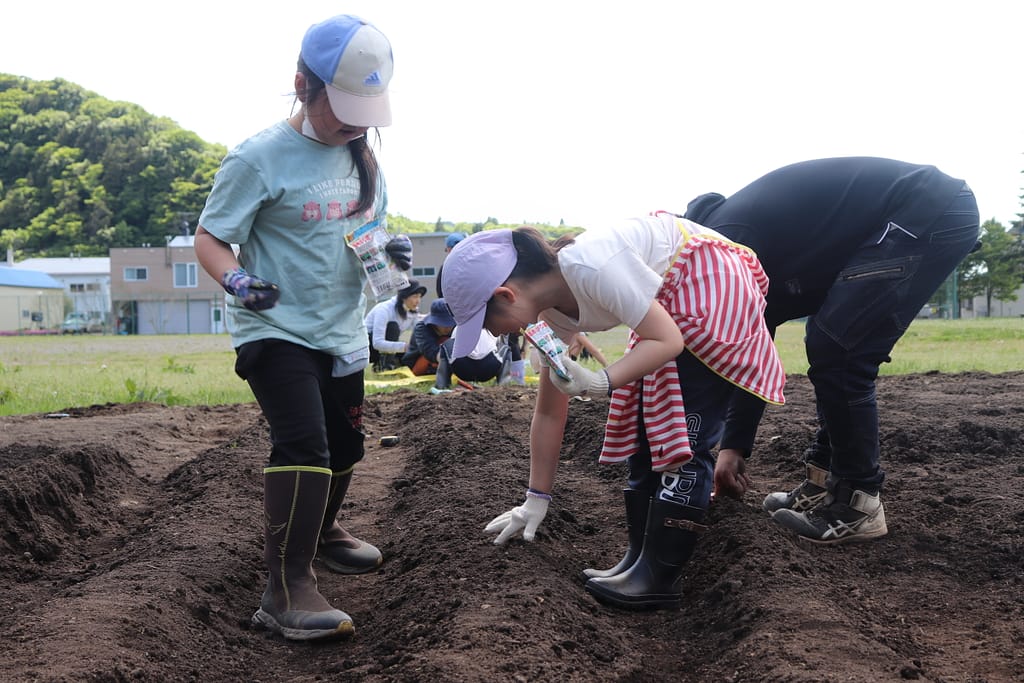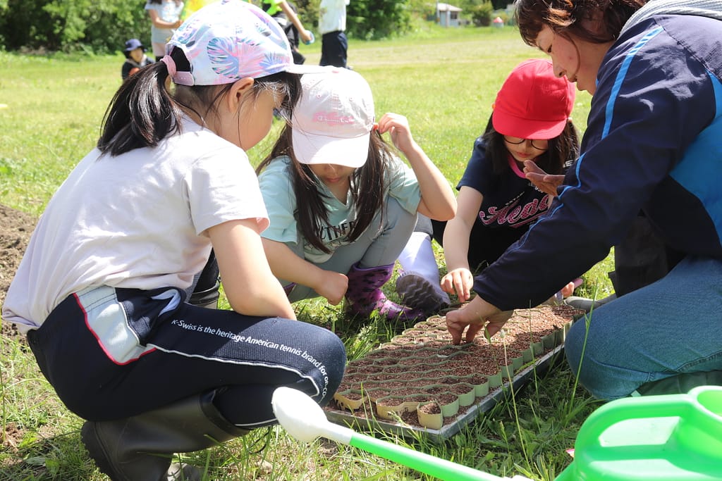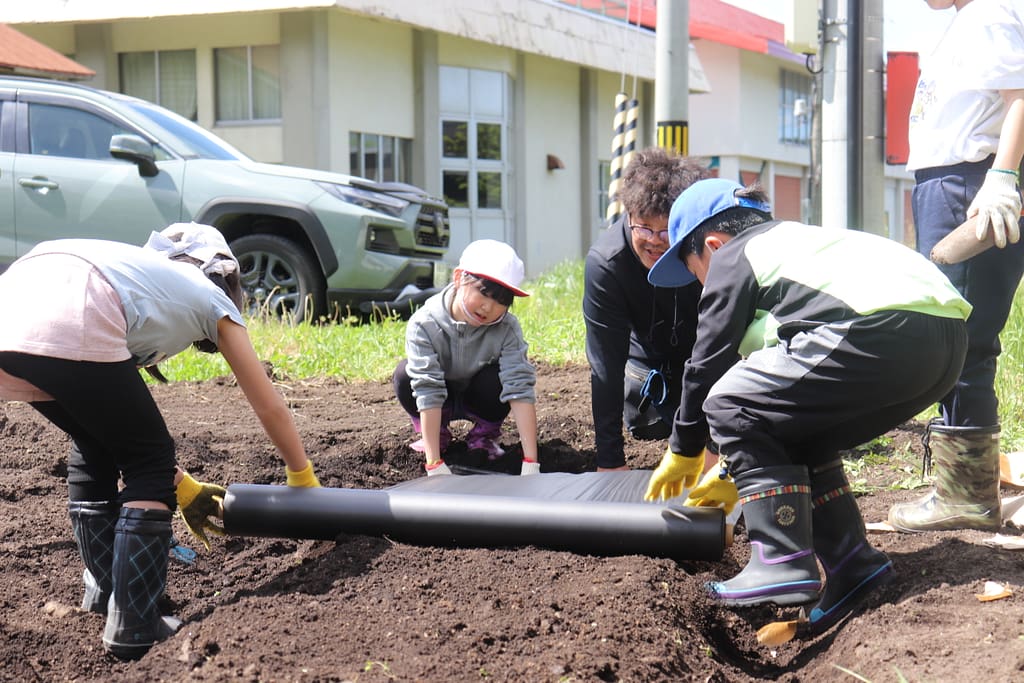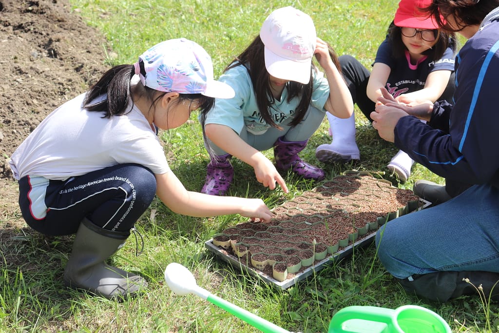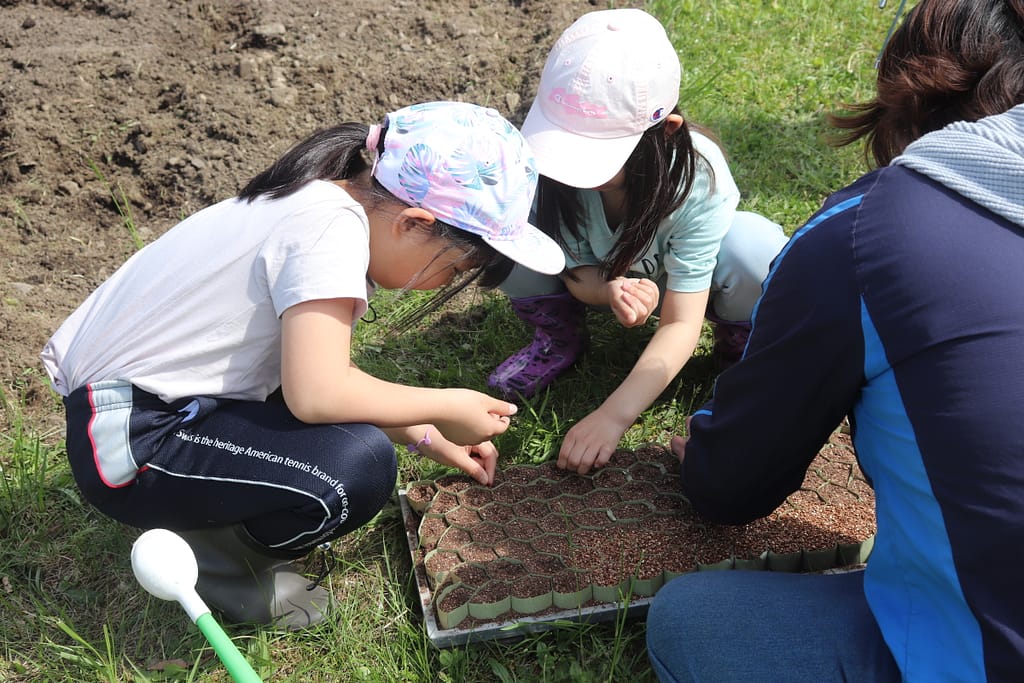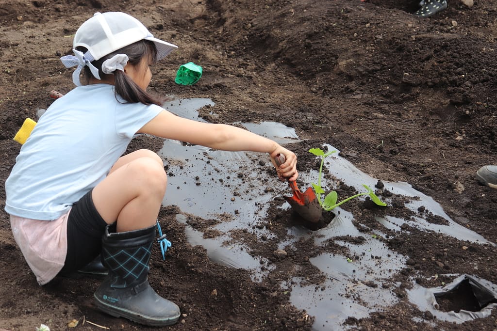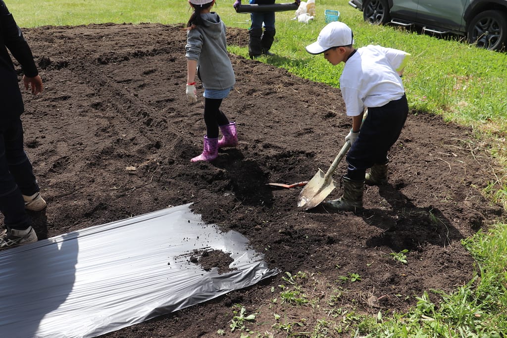 昨日、児童の保護者であり、農業経営者の相良様にご協力いただき、2年生の学級園にを植えました。