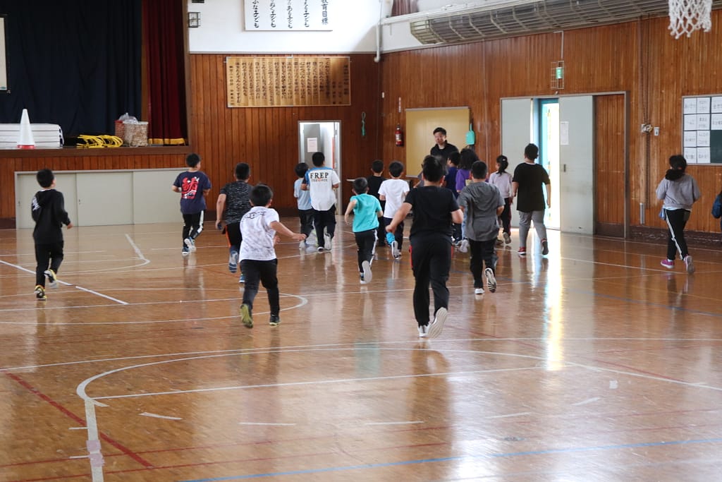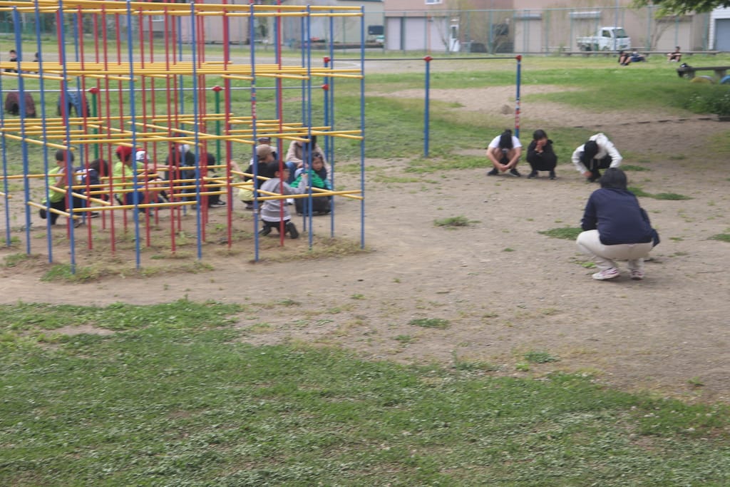 グラウンドで遊んでいたみなさんも静かに放送を聞いていました。
