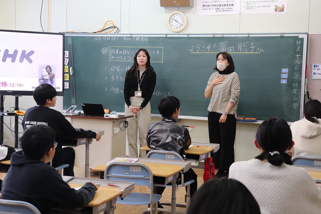 昨日、6年生を対象にキャリア教育が行われました。 講師に、NHK函館放送局の 冨田 聡子 様をお招きし、ご講演をいただきました。