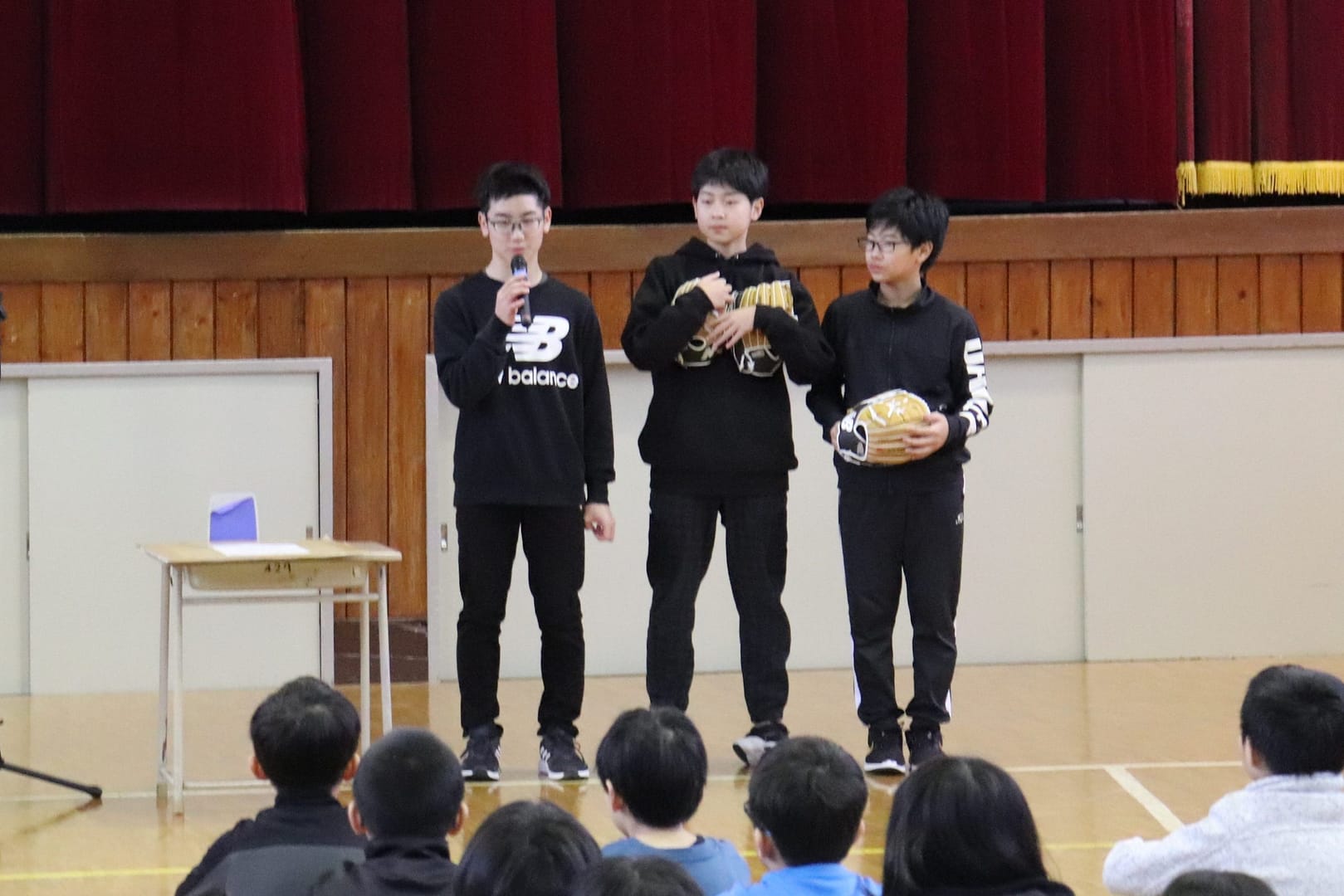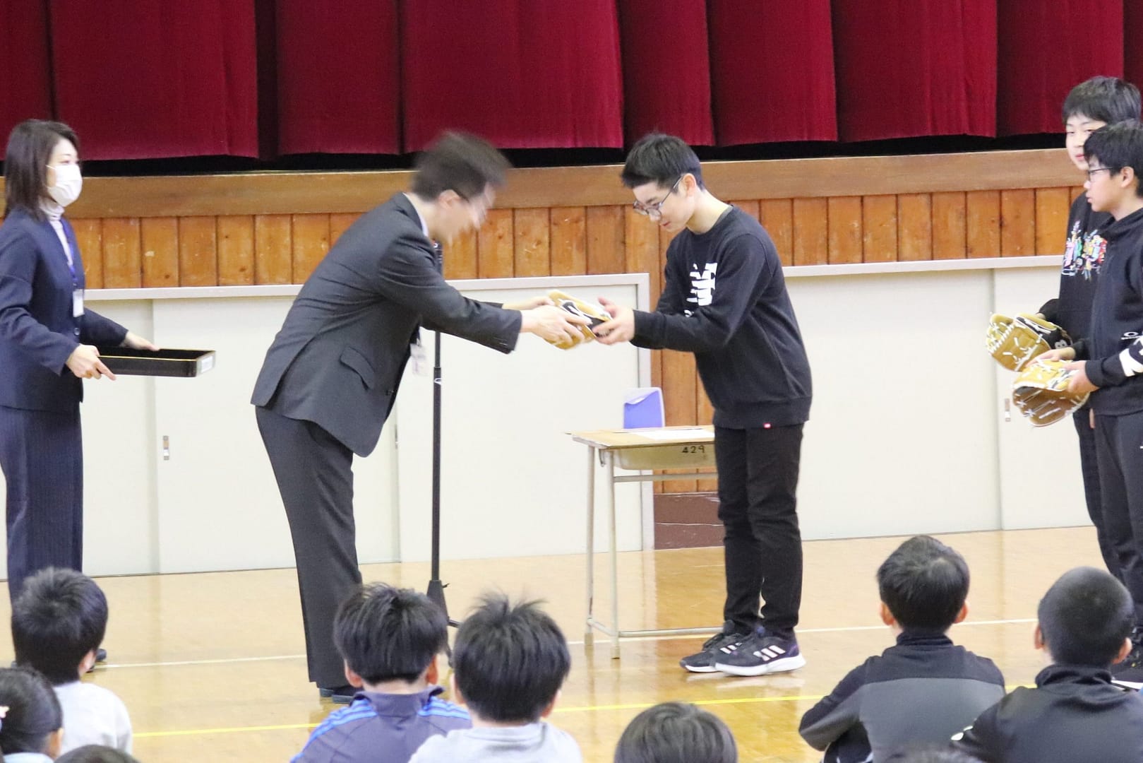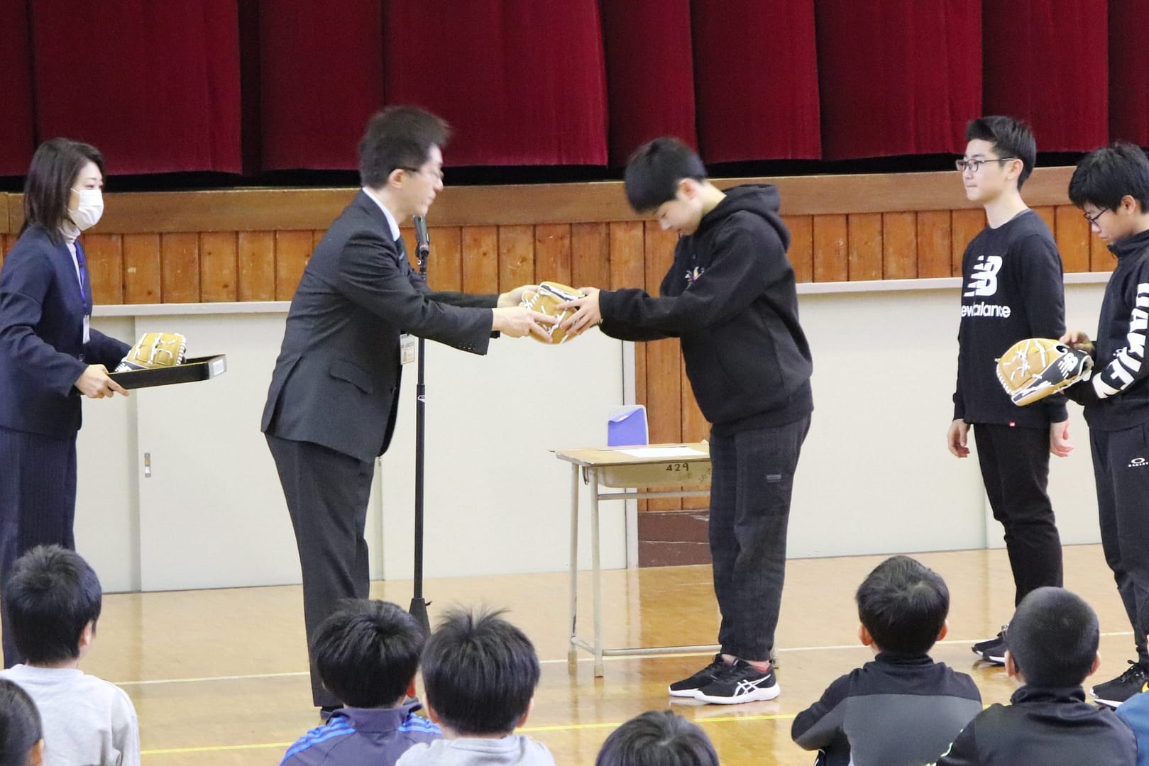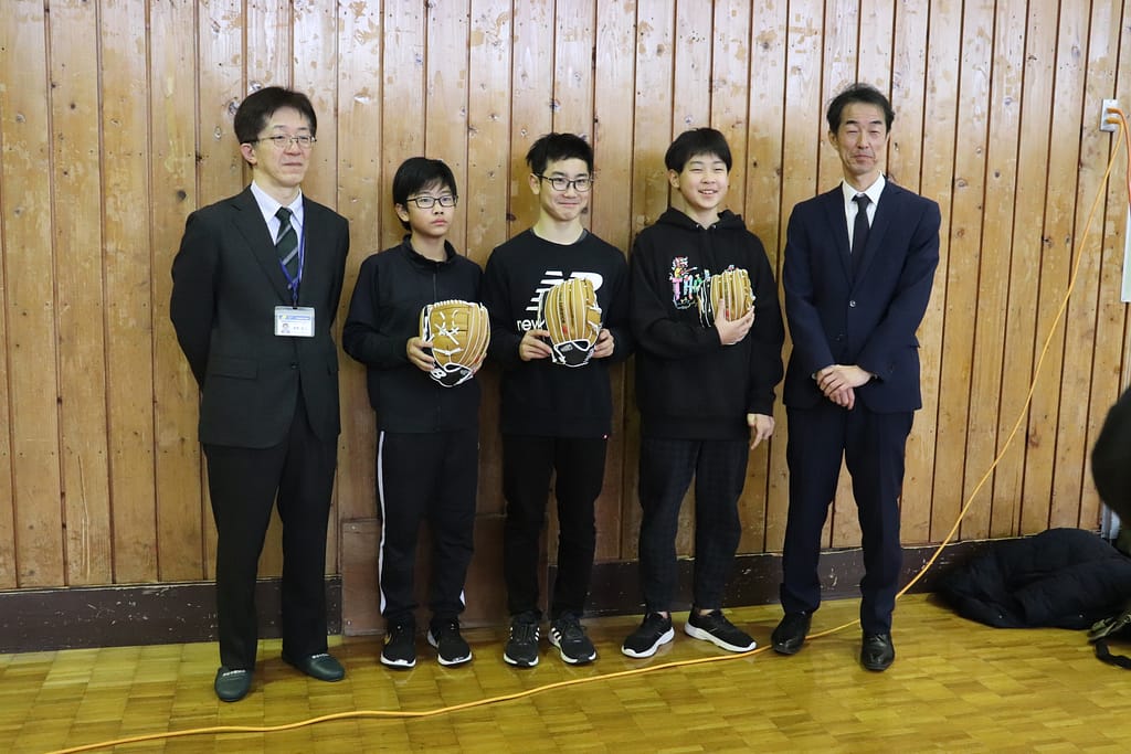 また、始業式の前に、MLBロサンゼルス・ドジャース所属の大谷 翔平選手からお手紙とともにグローブが寄贈されました。