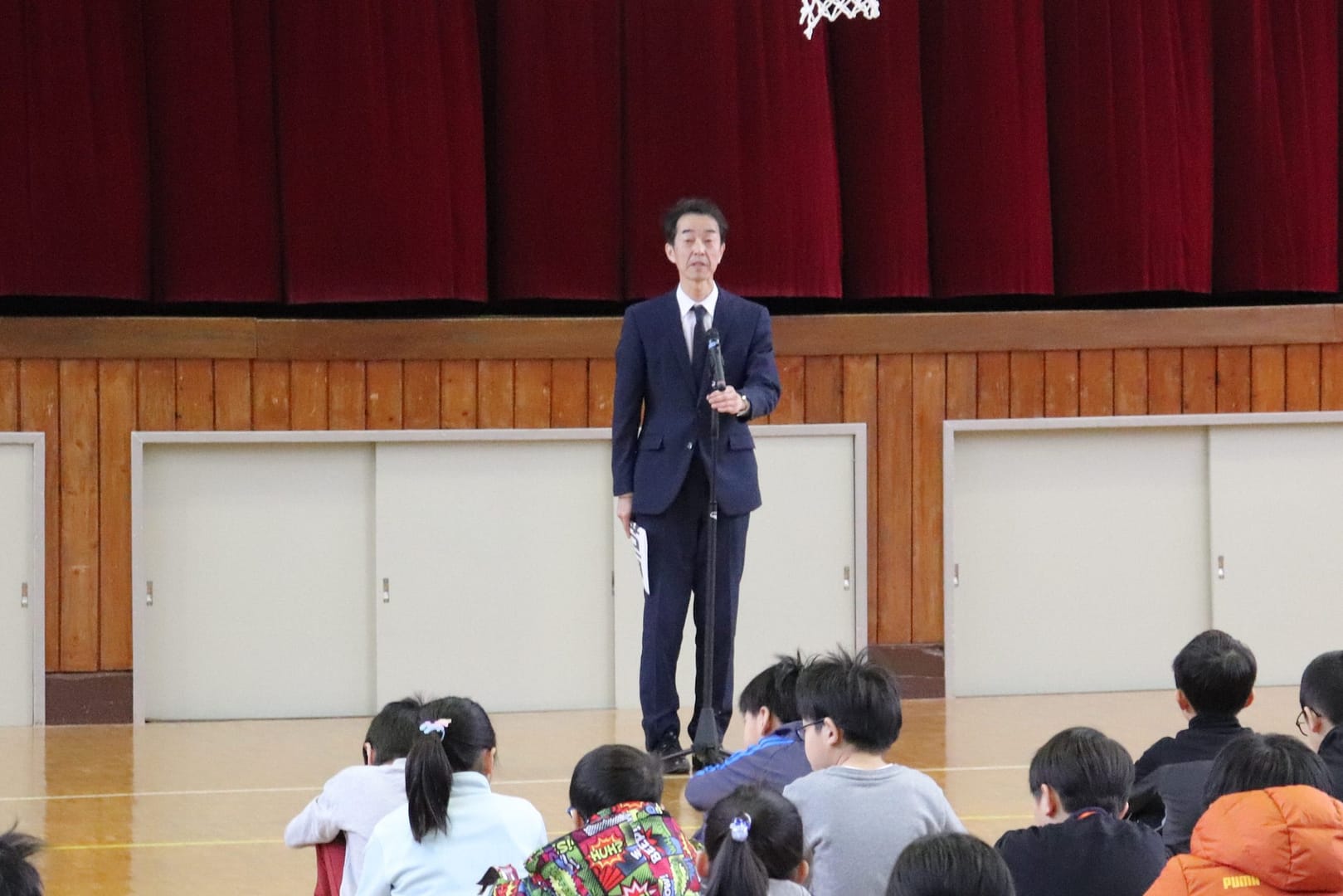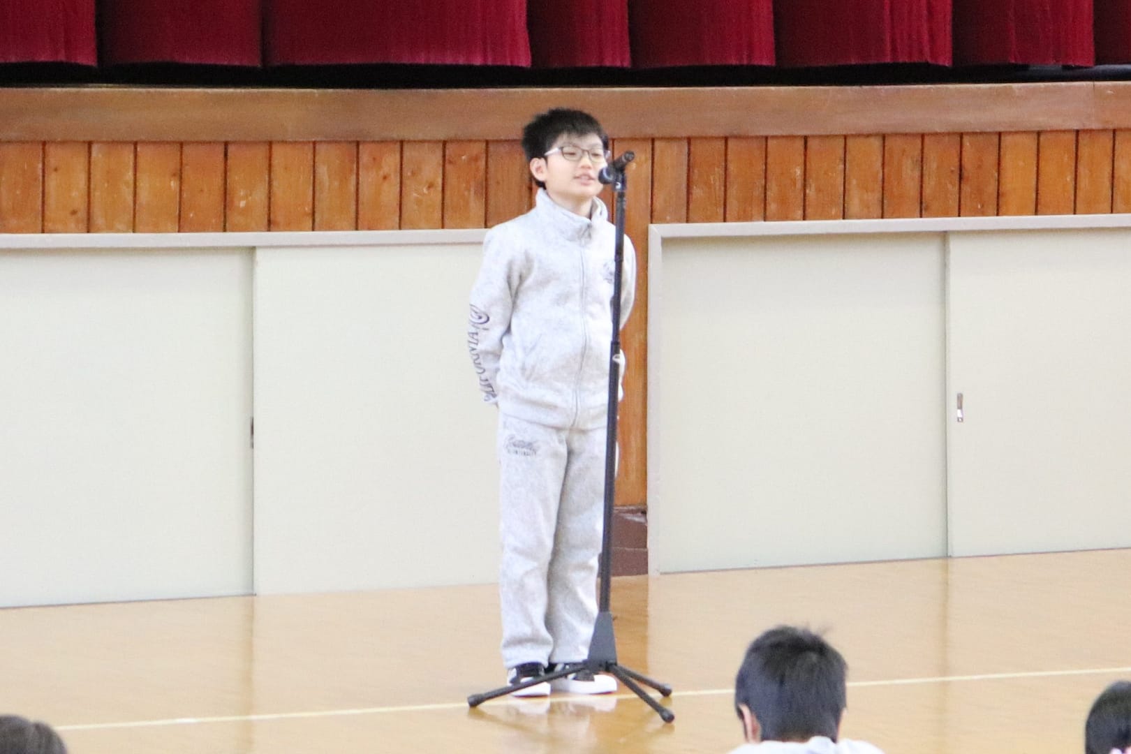 児童代表のお話し。冬休み中の出来事や3学期の目標を話してくれました。