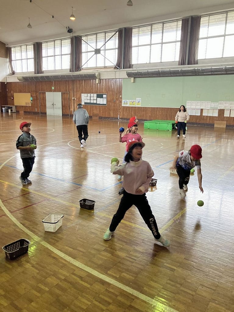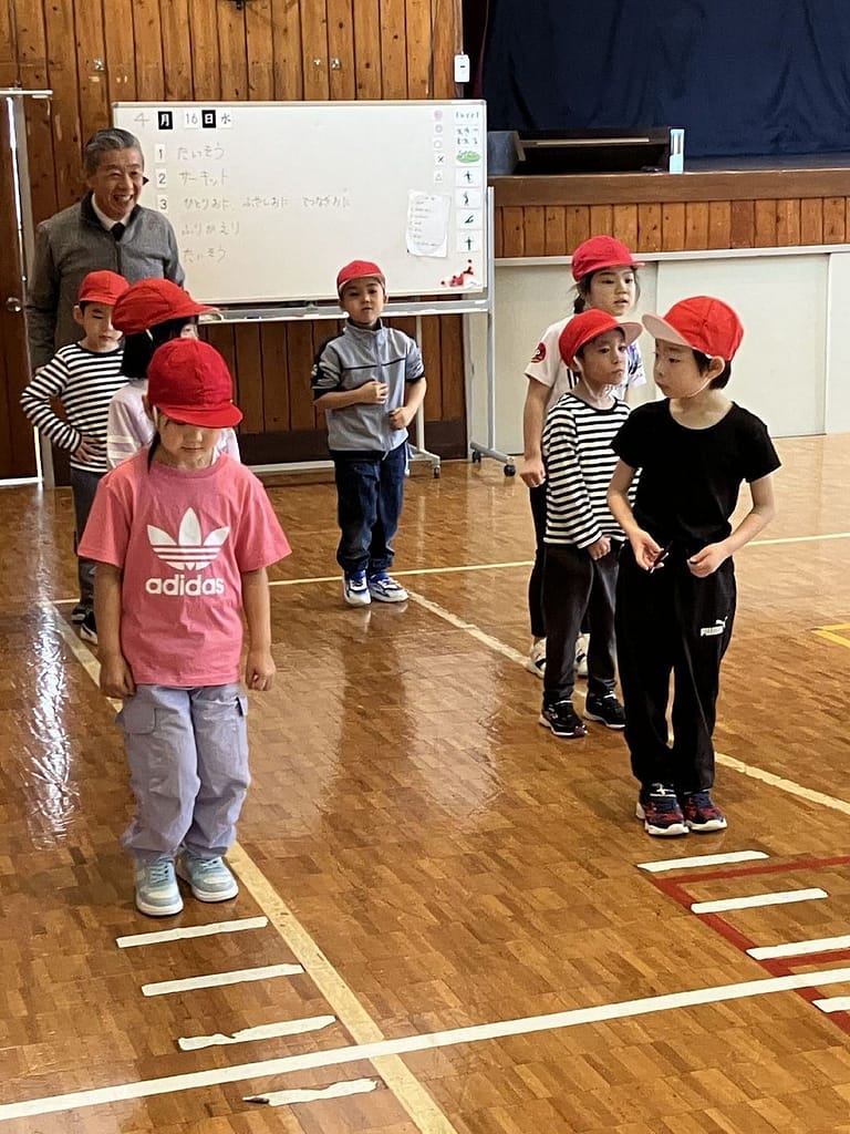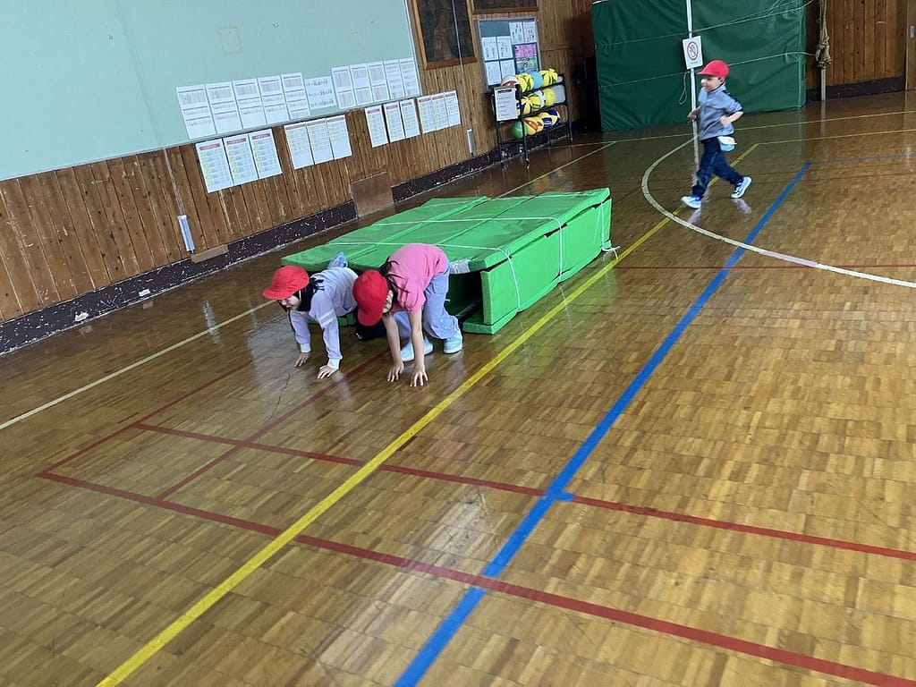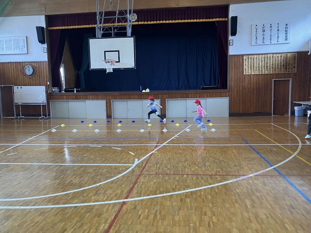 4月16日、1年生にとってはじめての体育でした。広い体育館でのびのび生き生きと活動することができました。写真は体育エキスパート教員の場面設定によるサーキットトレーニングの様子です。