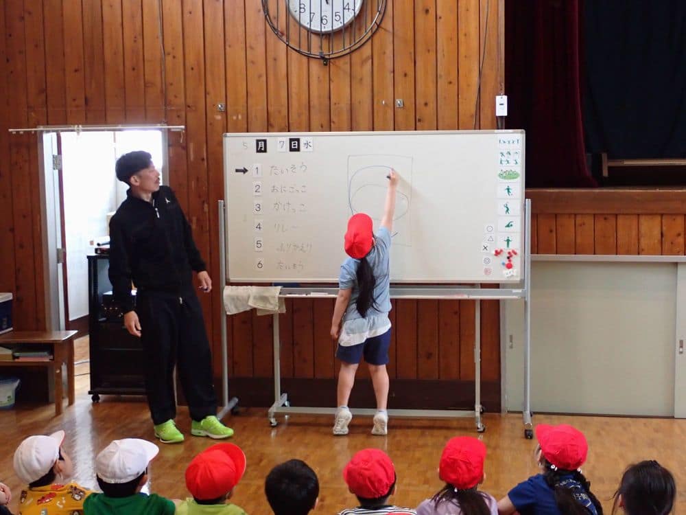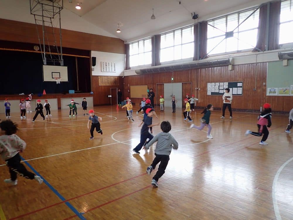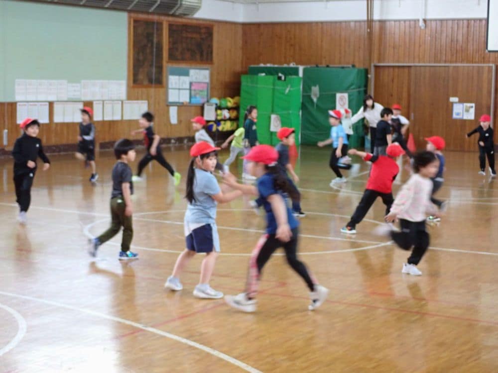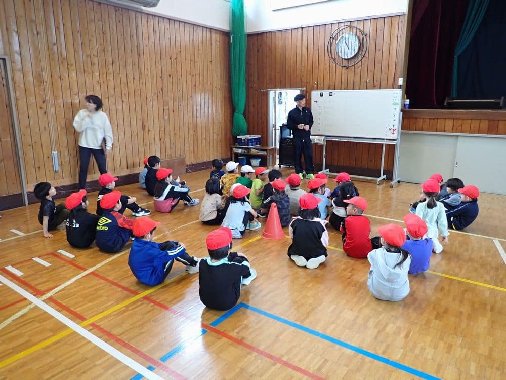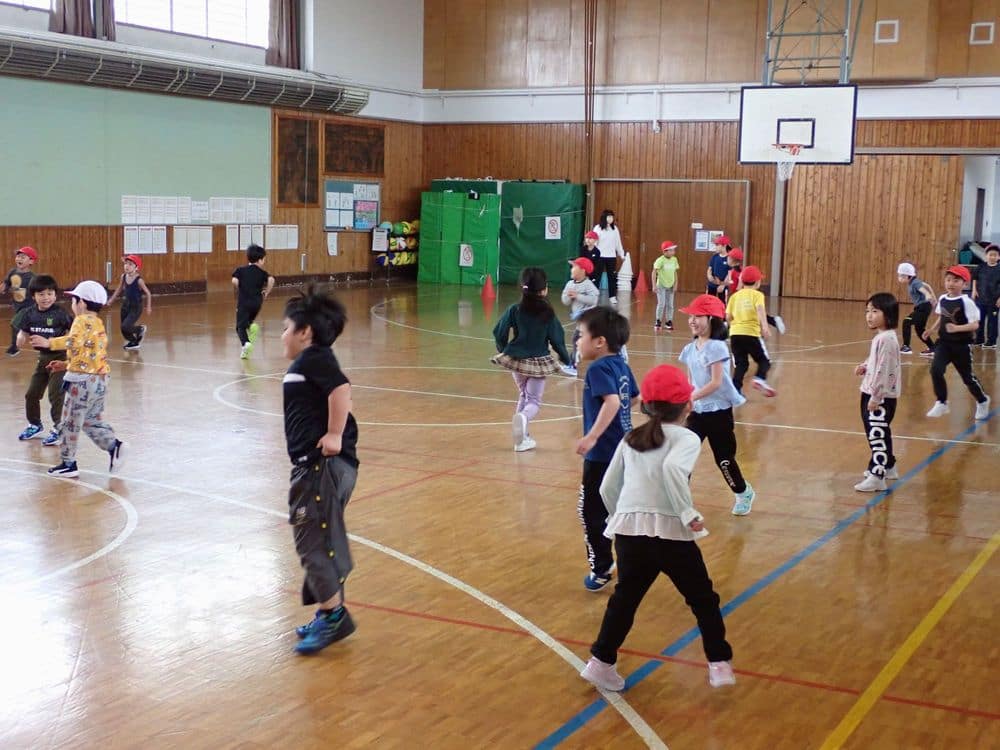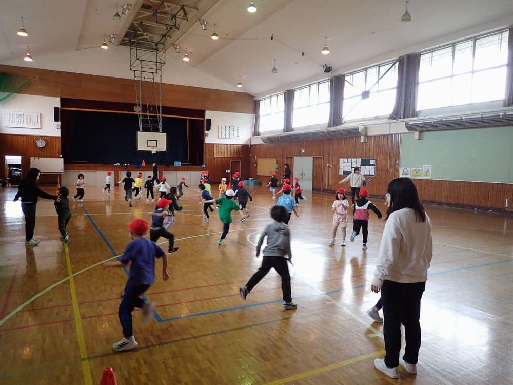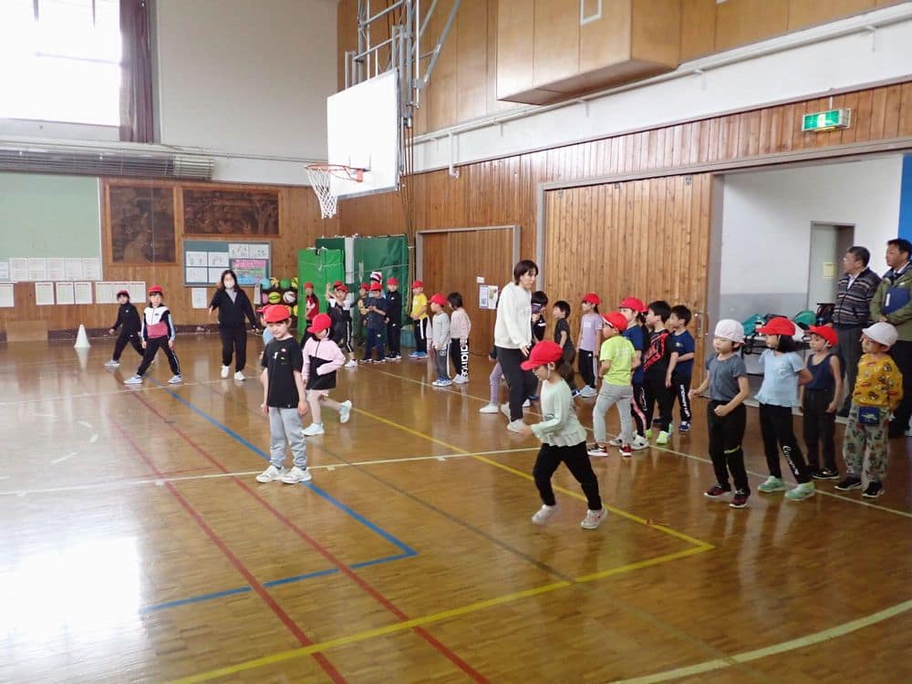 今年度町内に残る小学校は2校。年間3回を予定しています。今回の低学年交流では体育館において走る運動を中心としながら、元気いっぱいに活動が展開されました。特に1年生は、3月までこども園はぜるで楽しい時間を過ごしてきたお友達との再会に大喜びでした。「また、会える?」「次はいつ?」と次回を楽しみにしながらさよならしました。