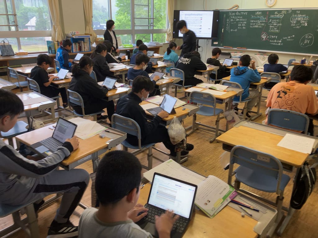 一人一人が自分の思いや感じたことを、タブレットに記入します。書きながら、友達の考えを参照することができます
