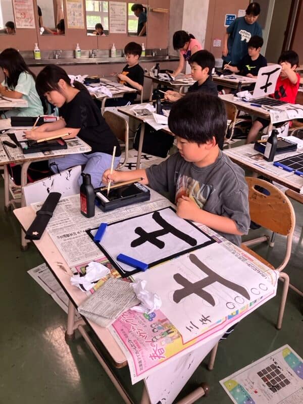 今日は3年生の書写の時間の様子です。今日の字は「土」でしたので「とめはね」ではなく、「とめとめとめっ!」でした。あらためて、日本の小学校教育の中ではたくさんの経験をすることができますね。