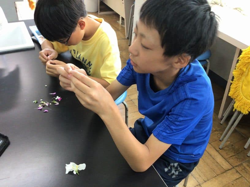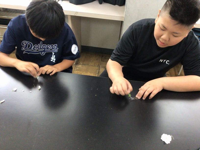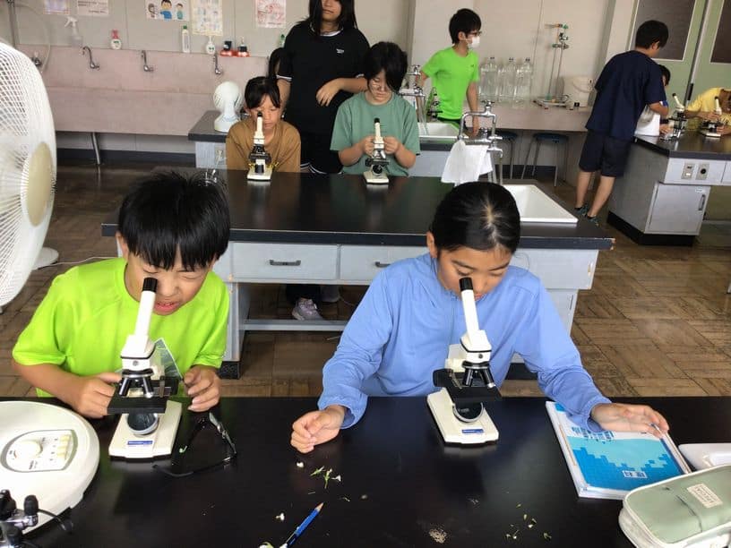 日常・平常の教科学習がしっかり行われていることを先日「ごはんとみそしる」に例えました。本校では理科専科教員の配置のおかげで、準備に時間のかかる理科授業が他教科同様「ごはんとみそしる」のように毎日行われています。終業式前日(7月24日)の慌ただしい中でも、写真のように楽しい観察・実験が5年生で行われました。