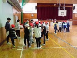 館小交流~中学年の部 2025年12月10日 最終更新日時 : 2025年12月11日 assho 12月8日月曜日、標記活動が4時間目に行われました。中学年になると、動きもスピーディーになり、展開の早いミニバレーゲームとなりました。金曜日はいよいよ高学年です。