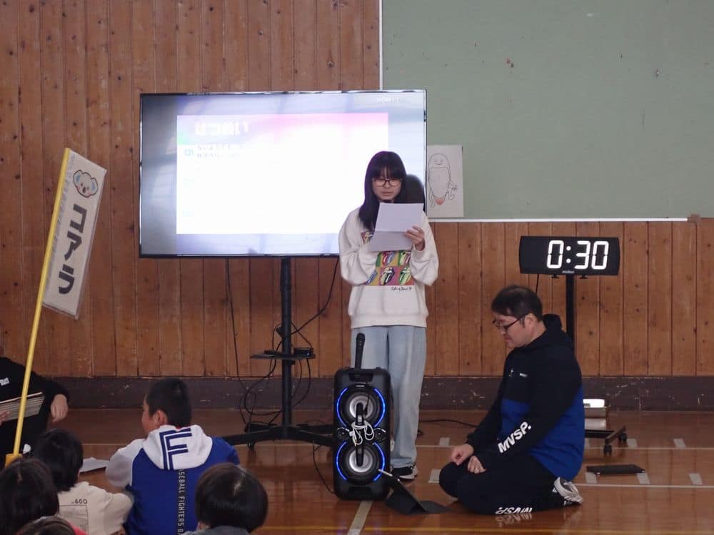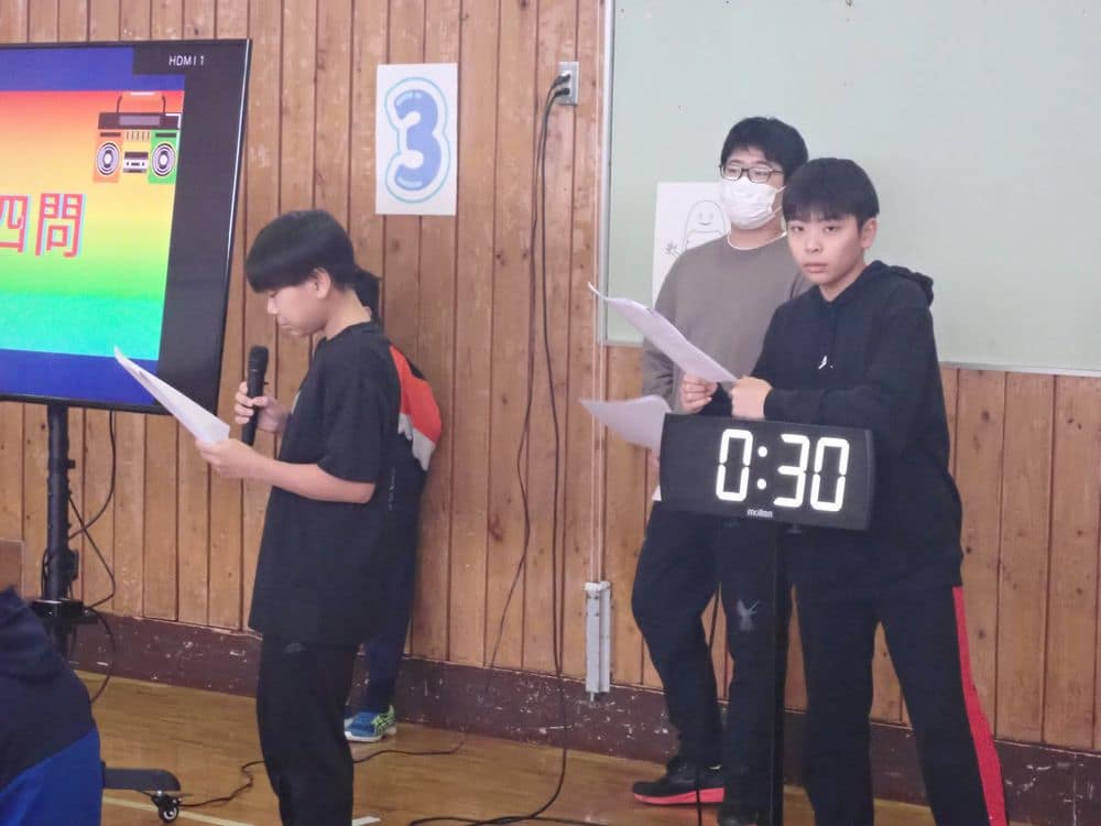 12月19日金曜日昼休みを使って、標記活動がたてわり班をまとまりとして行われました。放送委員会は、「誰の声でしょうかクイズ」「放送委員会体験」の2つを用意し、全校のみなさんが楽しむ活動としてくれました。6年生のリーダーを中心にたてわり班で相談する姿が印象に残りました。