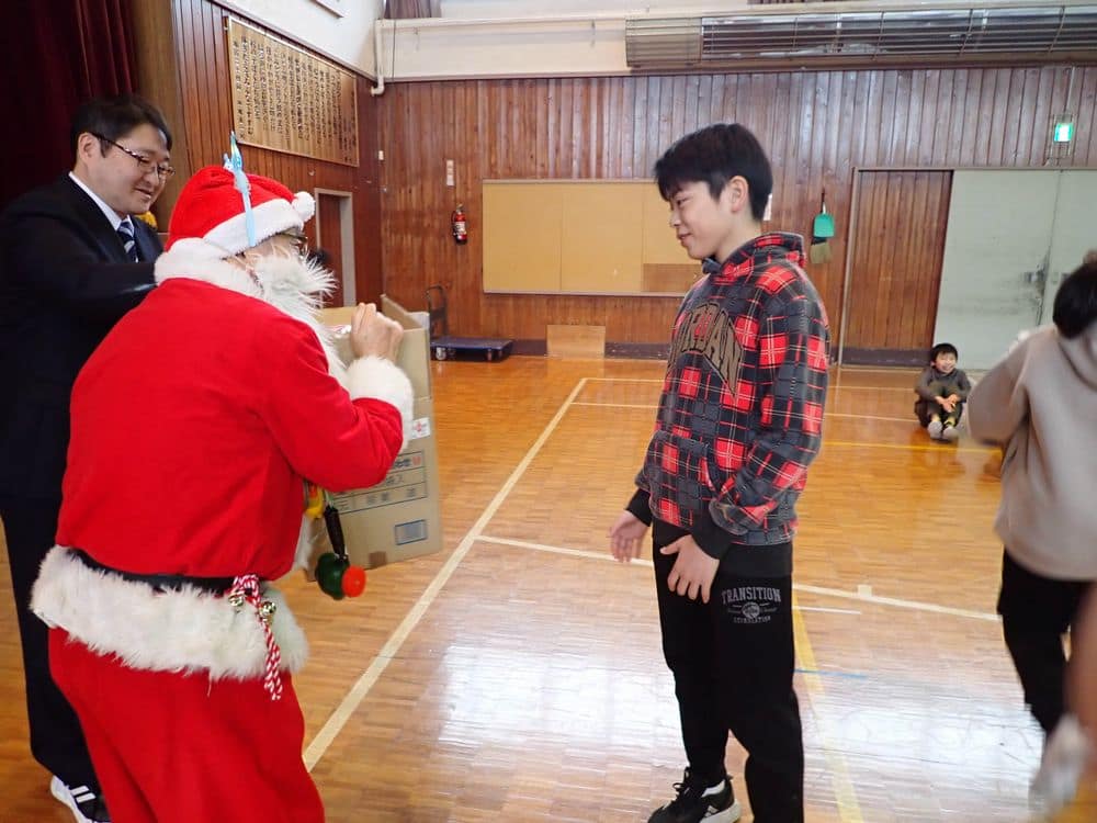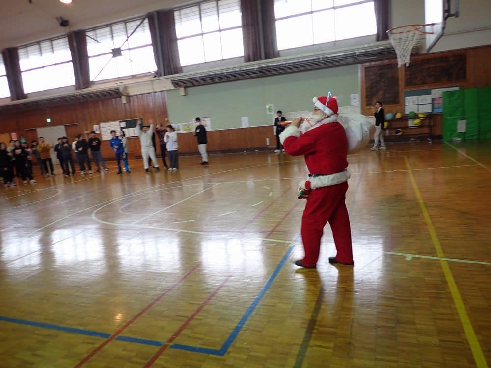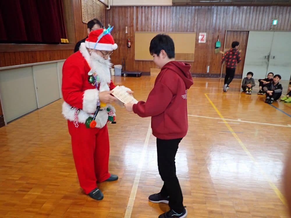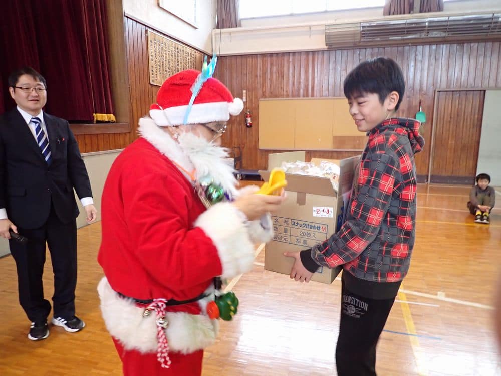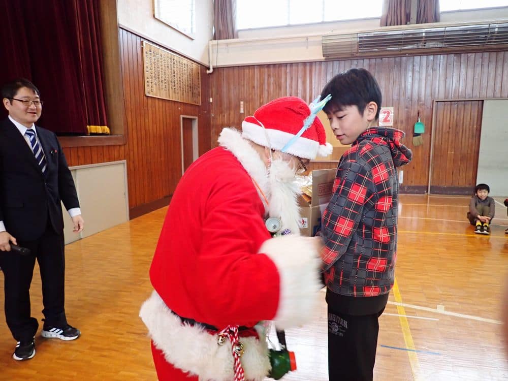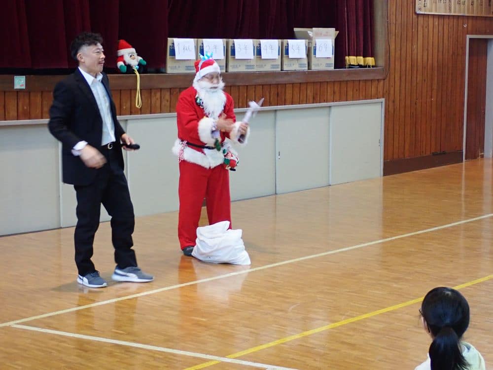そんな中、終業式の直前に「ゆださんタクロース」がプレゼントを手に登場しました。毎年ありがとうございます。サンタクロースはほんとうにいるのです!