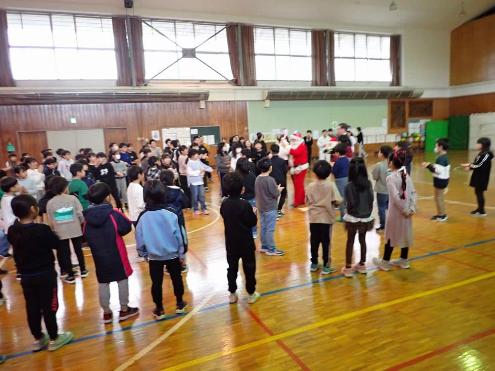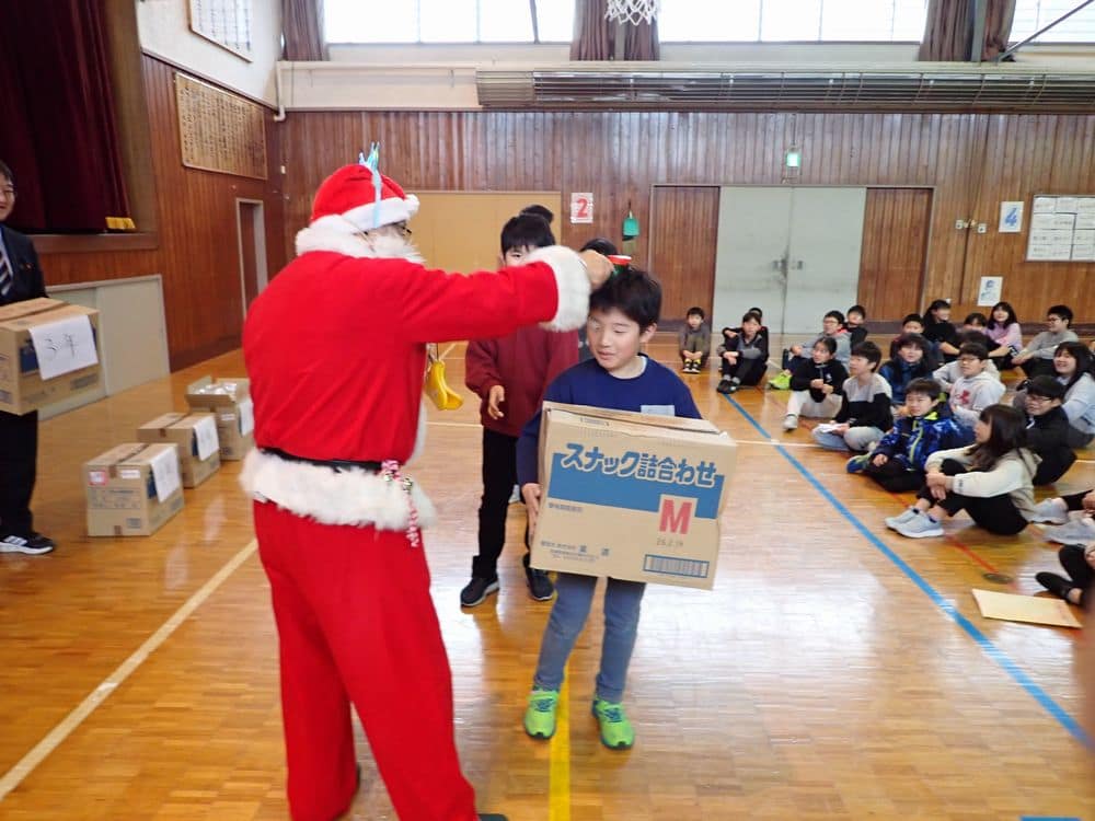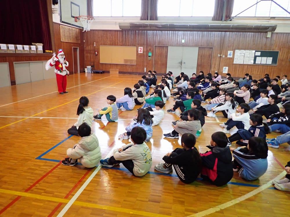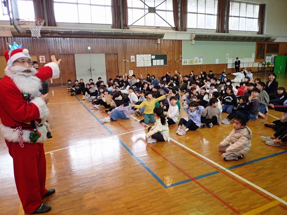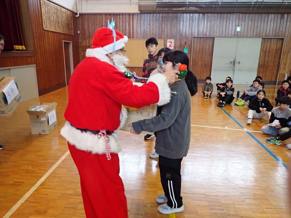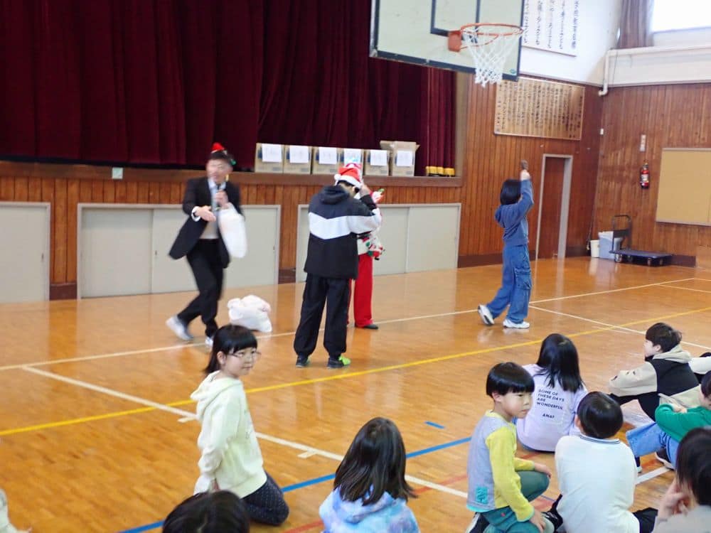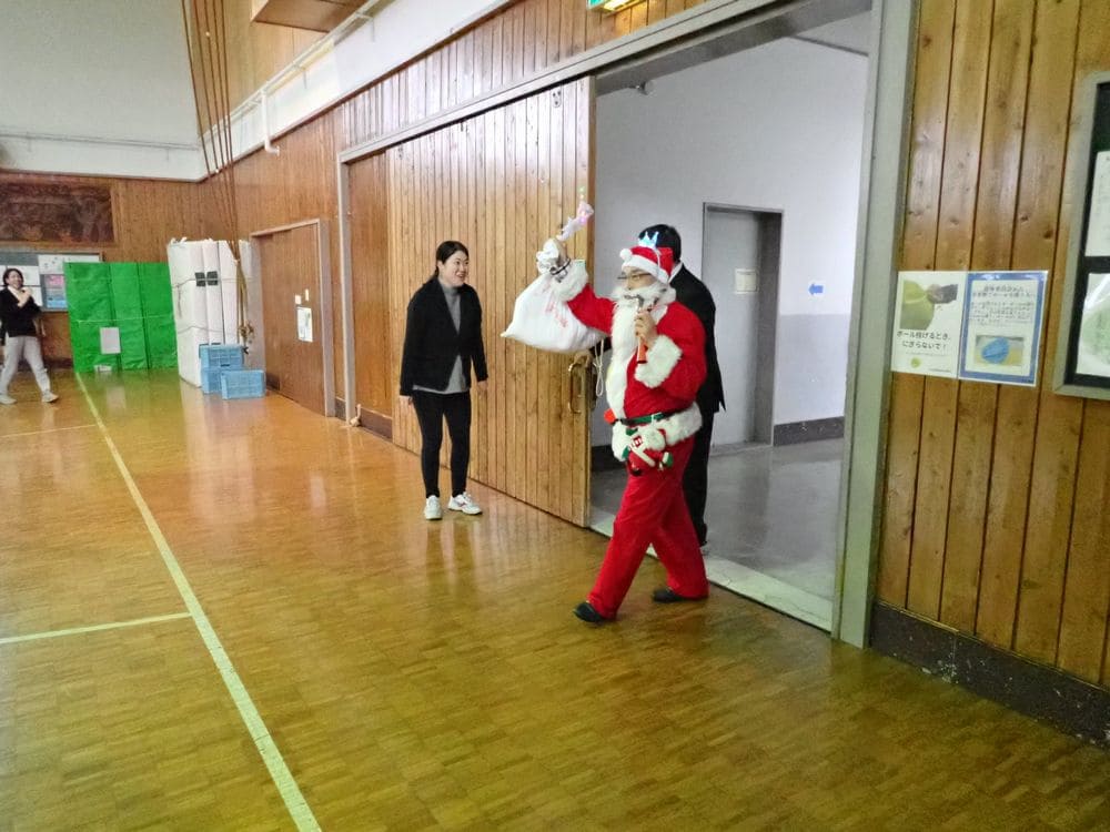そんな中、終業式の直前に「ゆださんタクロース」がプレゼントを手に登場しました。毎年ありがとうございます。サンタクロースはほんとうにいるのです!
