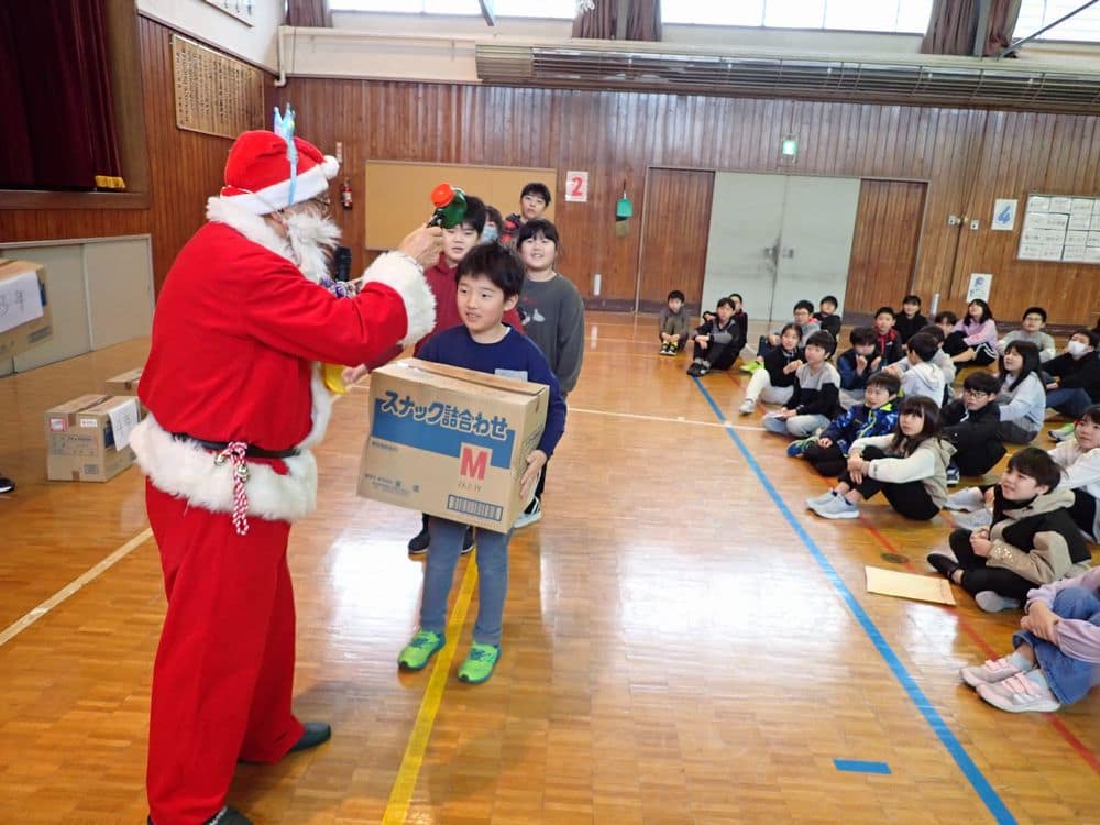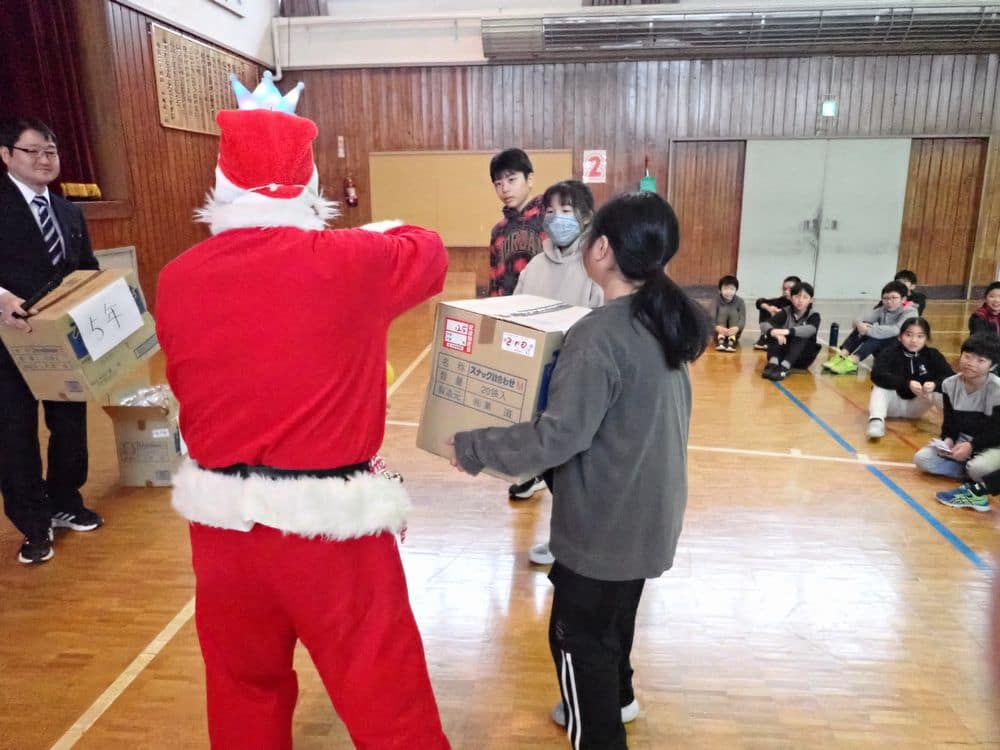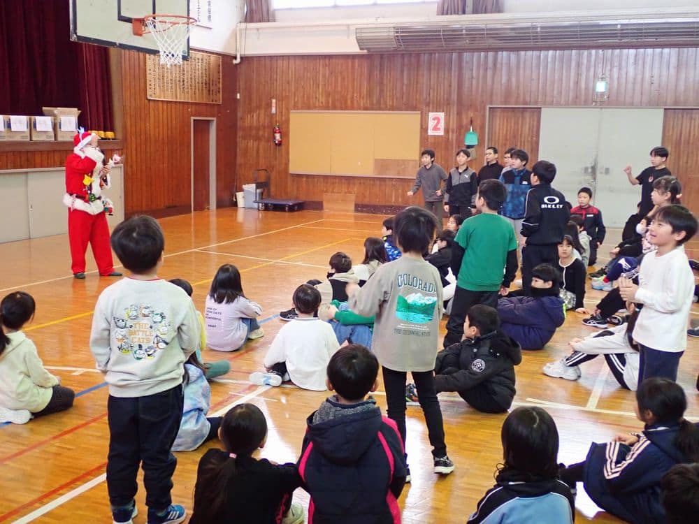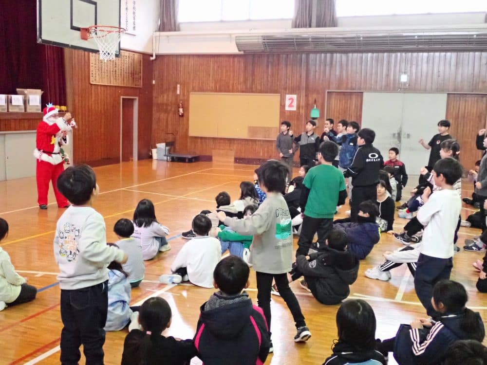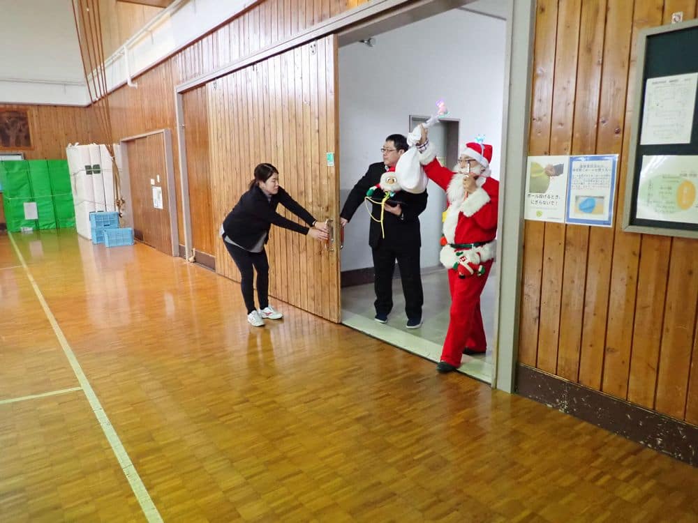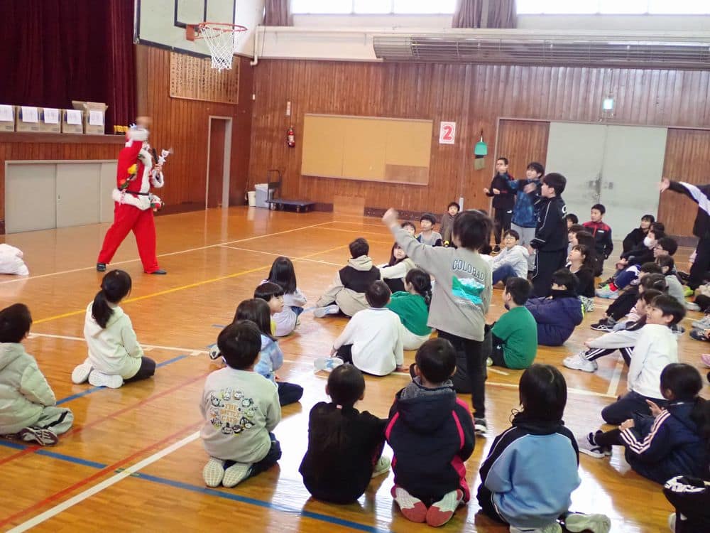 そんな中、終業式の直前に「ゆださんタクロース」がプレゼントを手に登場しました。毎年ありがとうございます。サンタクロースはほんとうにいるのです!