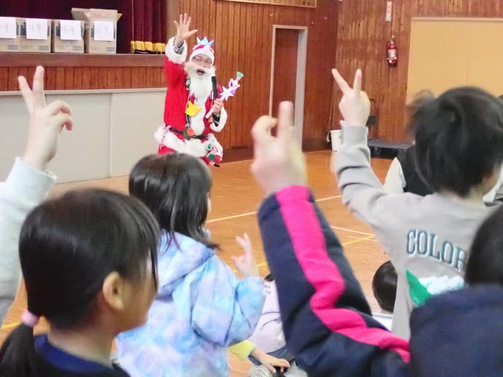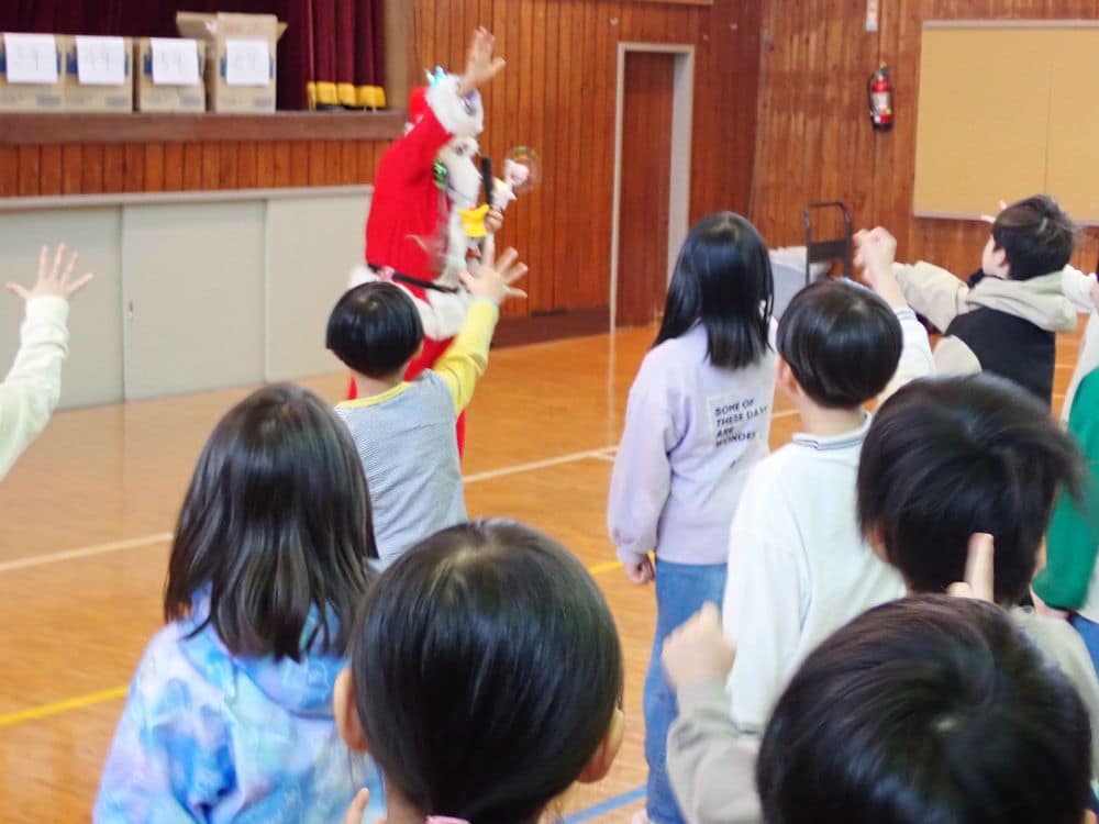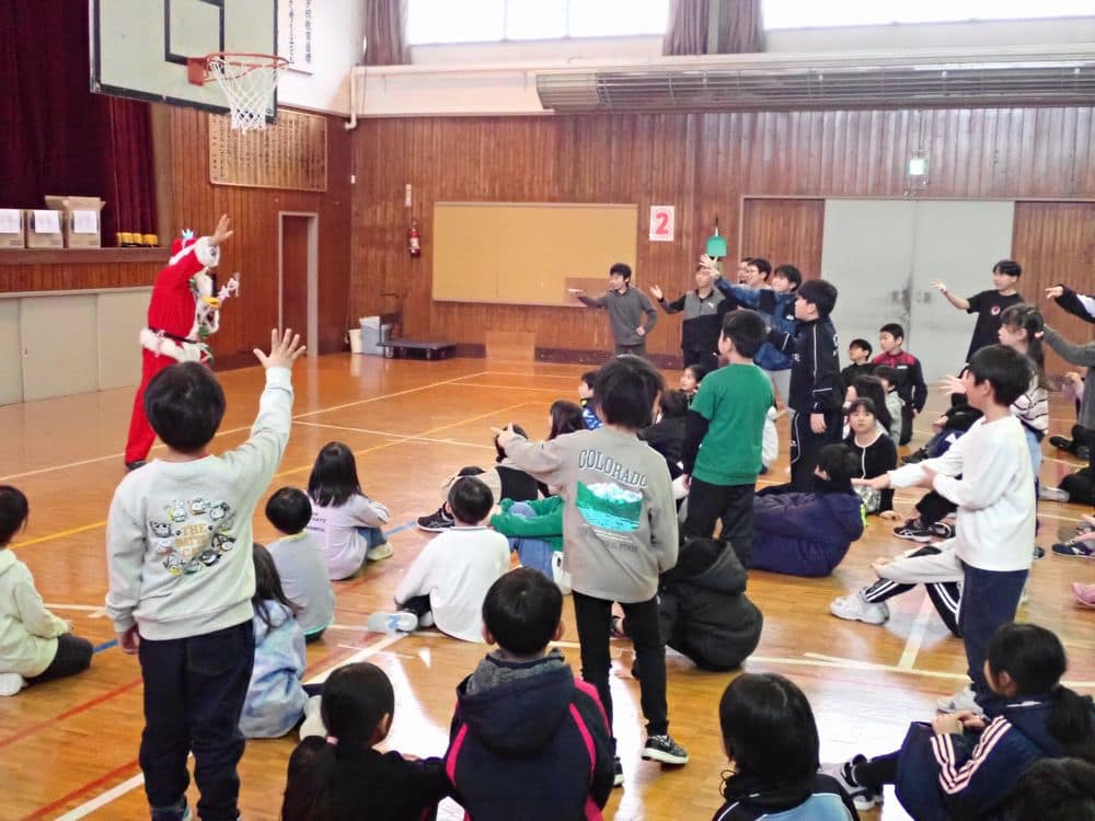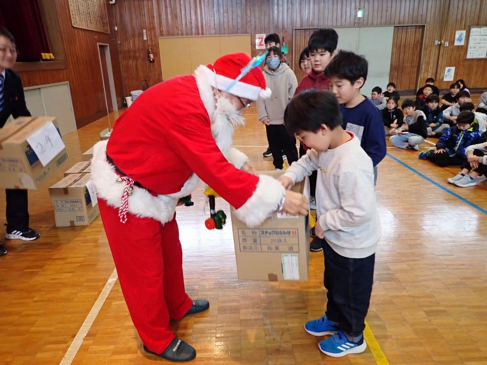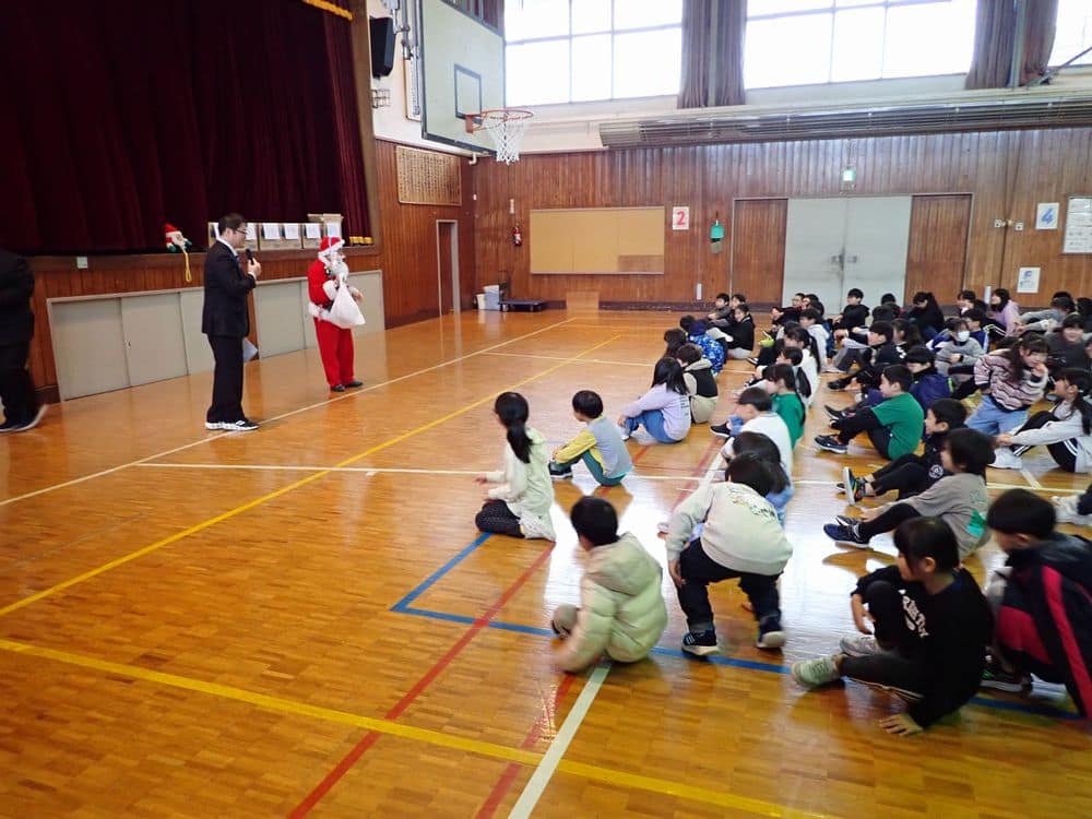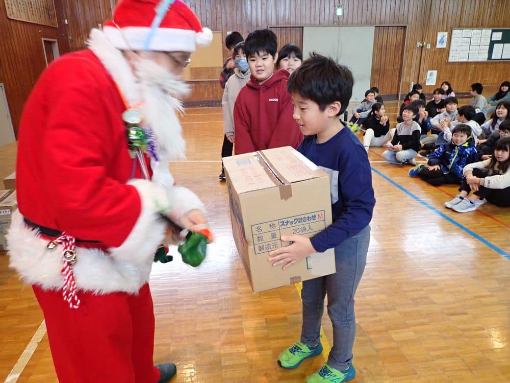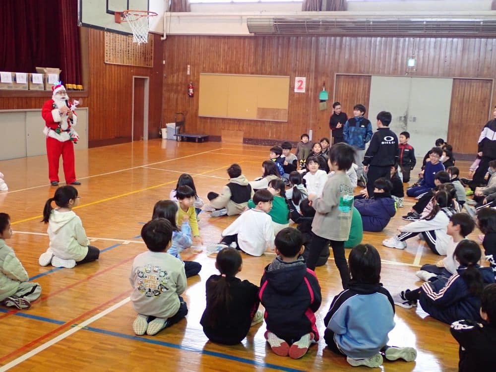 そんな中、終業式の直前に「ゆださんタクロース」がプレゼントを手に登場しました。毎年ありがとうございます。サンタクロースはほんとうにいるのです!