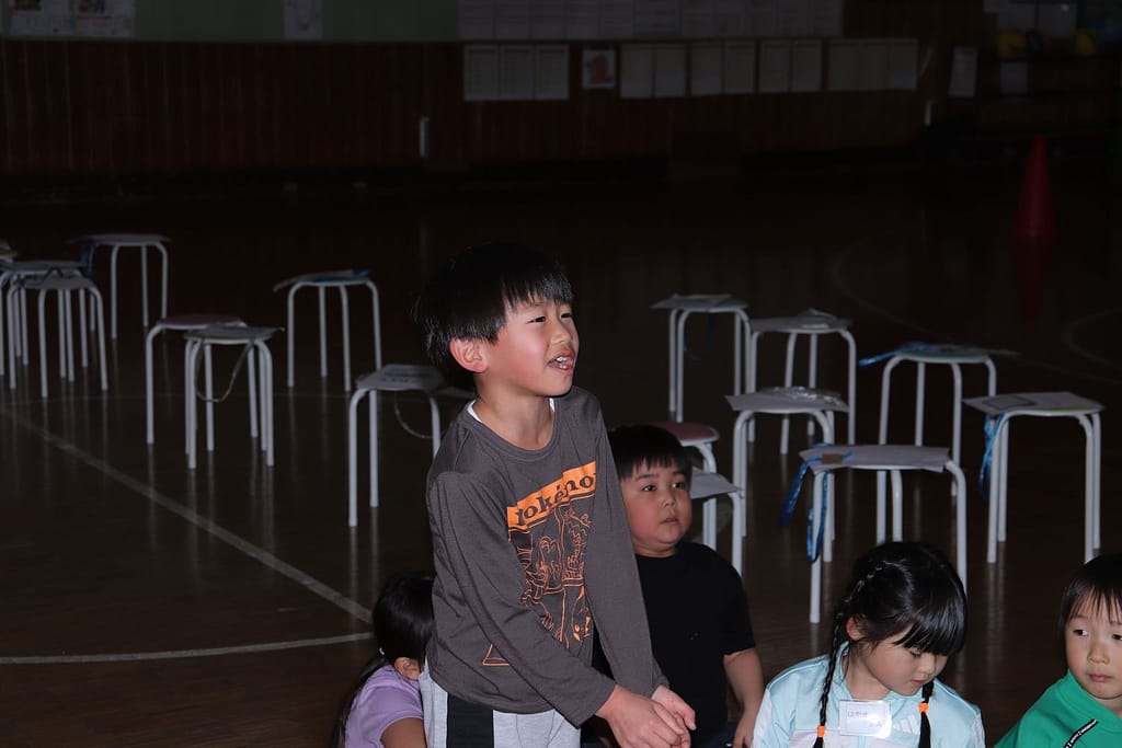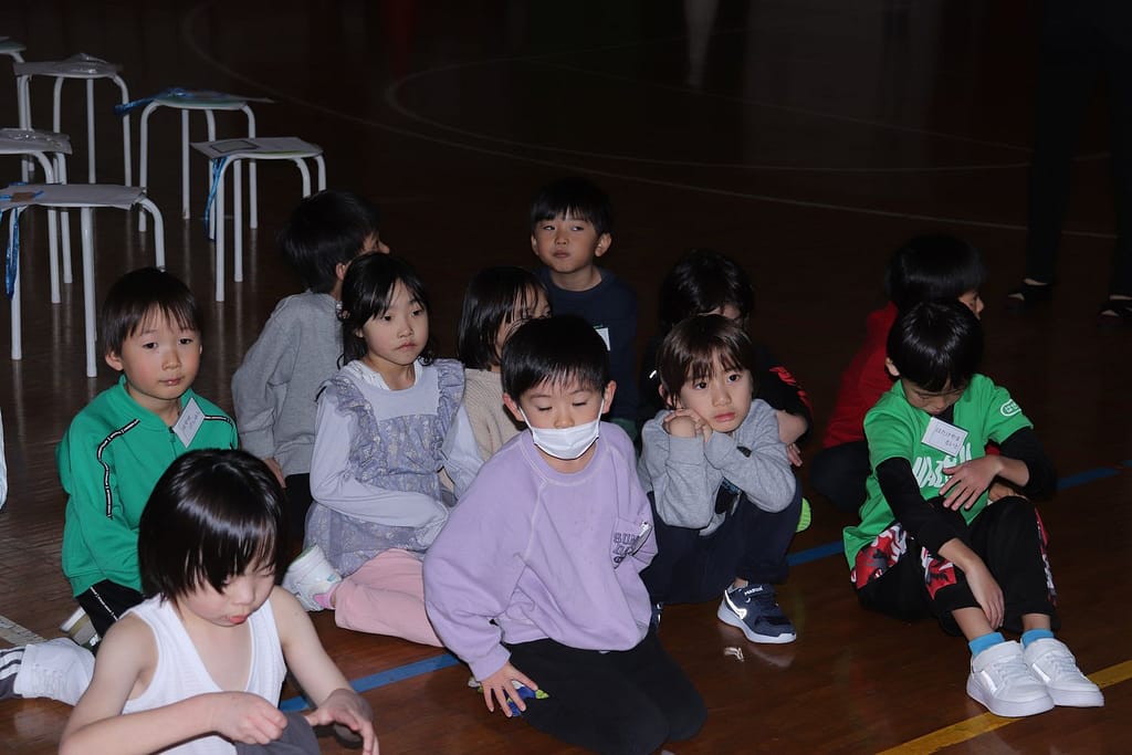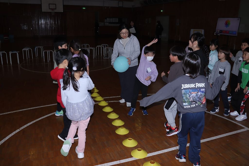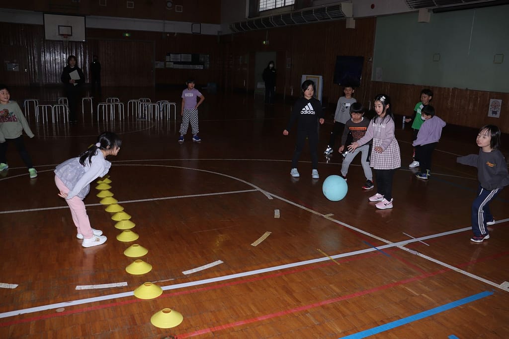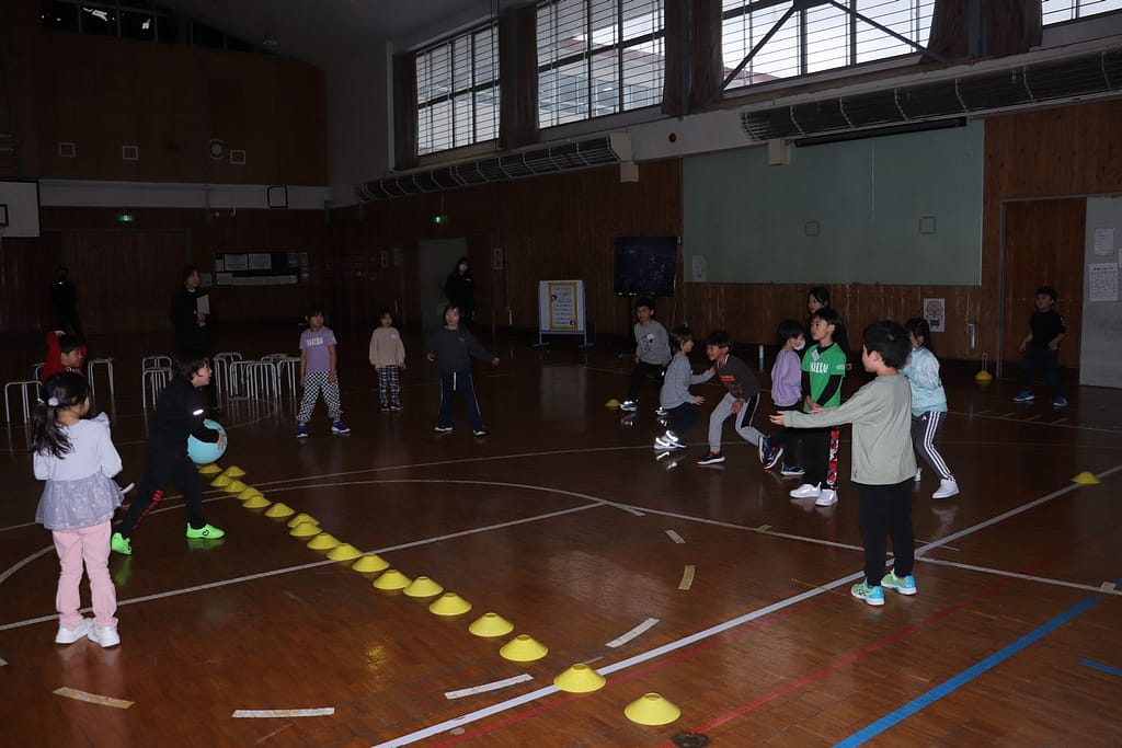 新1年生の1日入学が、2月10日火曜日に行われました。保護者のみなさんへのご説明の時間、新1年生は、先輩の1年生といっしょに体育館で運動遊びなどを楽しみました。「フルーツバスケット(学校バージョン)、ボール運びリレー、王様ドッジボール」の3つです。