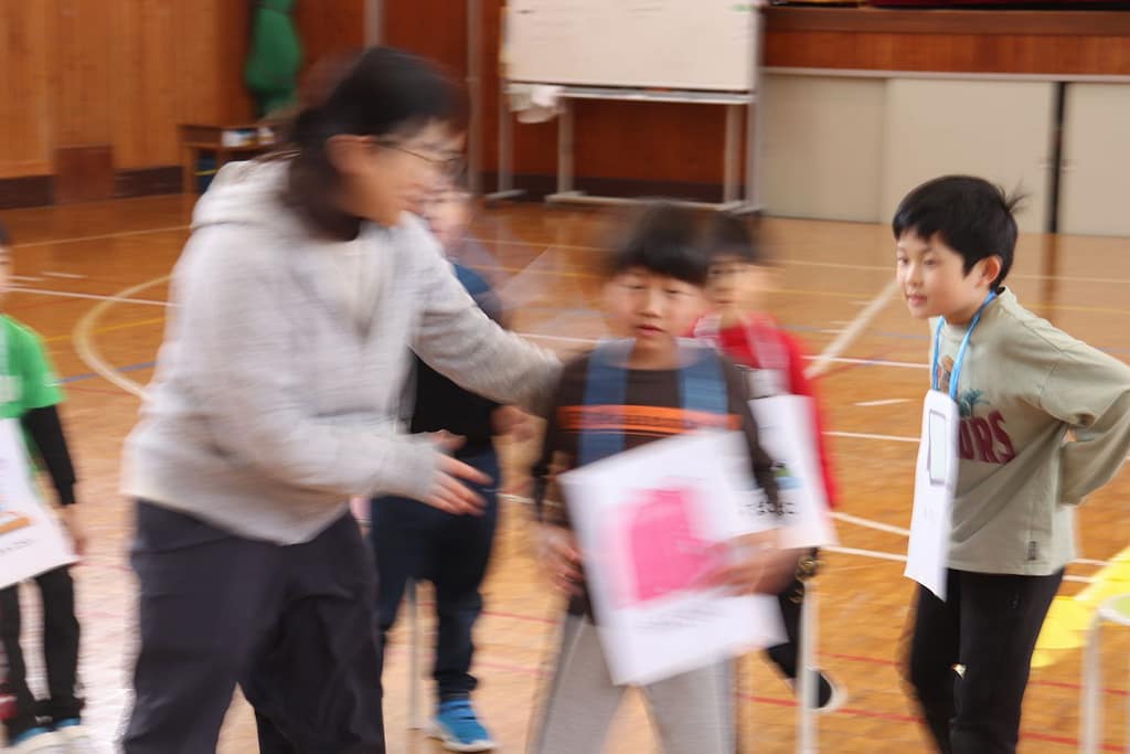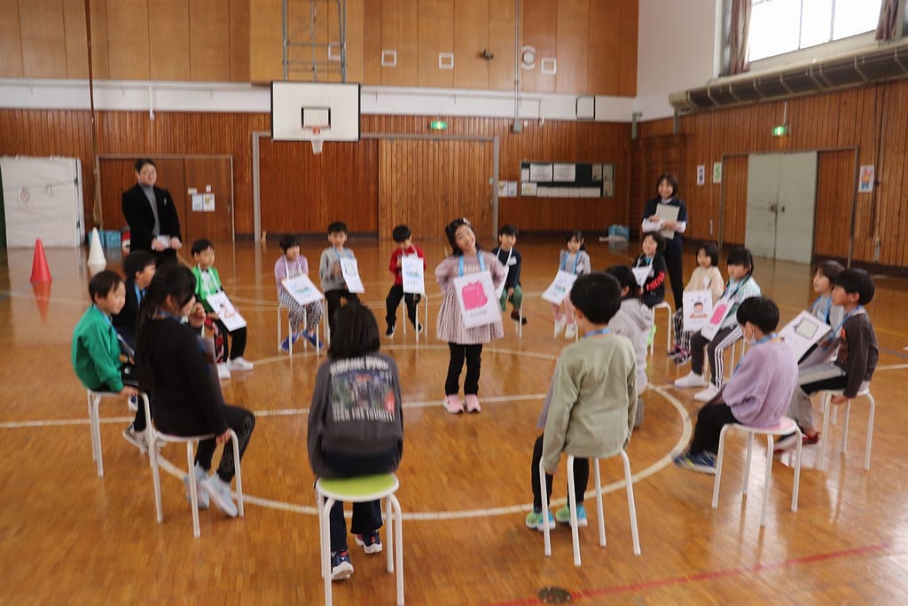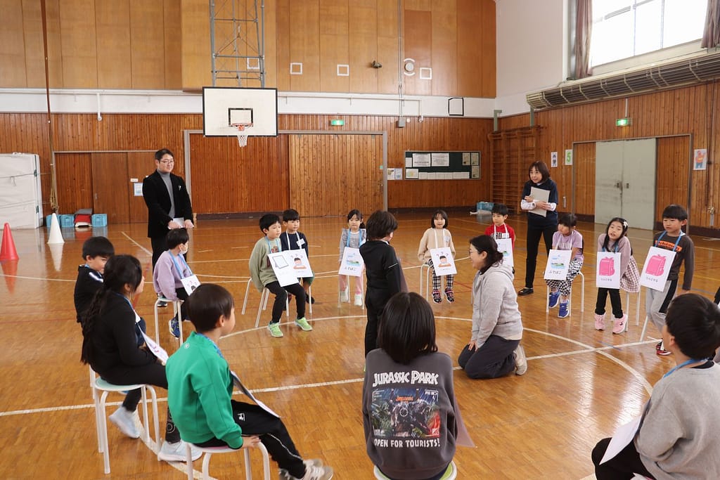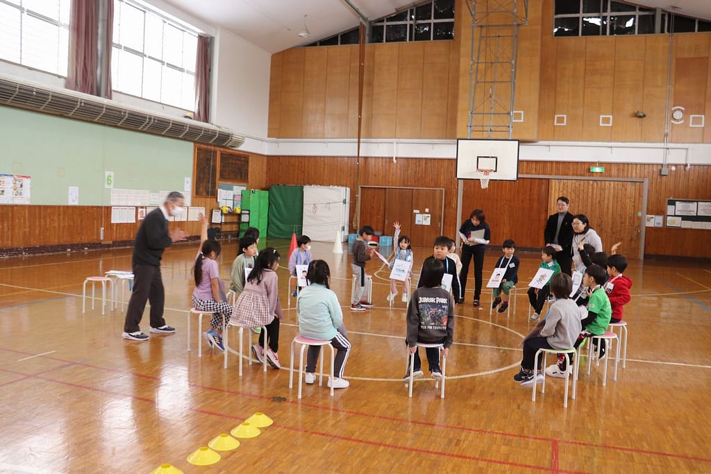 新1年生の1日入学が、2月10日火曜日に行われました。保護者のみなさんへのご説明の時間、新1年生は、先輩の1年生といっしょに体育館で運動遊びなどを楽しみました。「フルーツバスケット(学校バージョン)、ボール運びリレー、王様ドッジボール」の3つです。