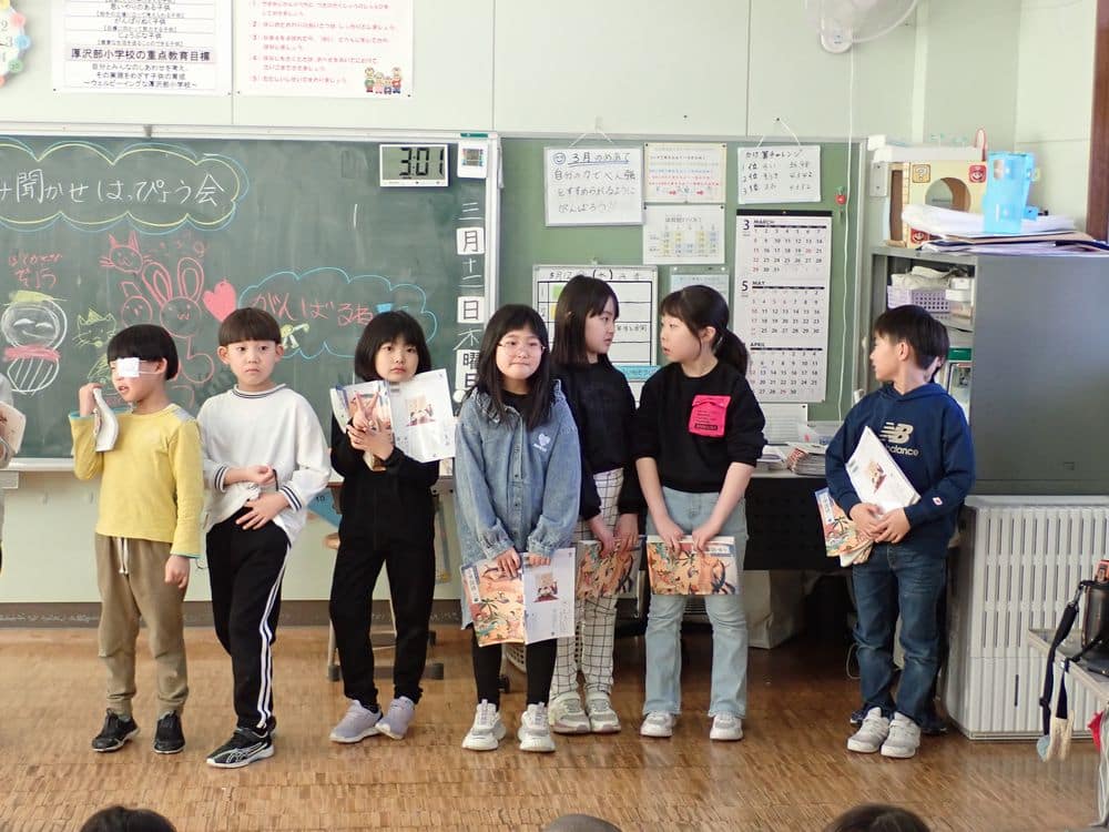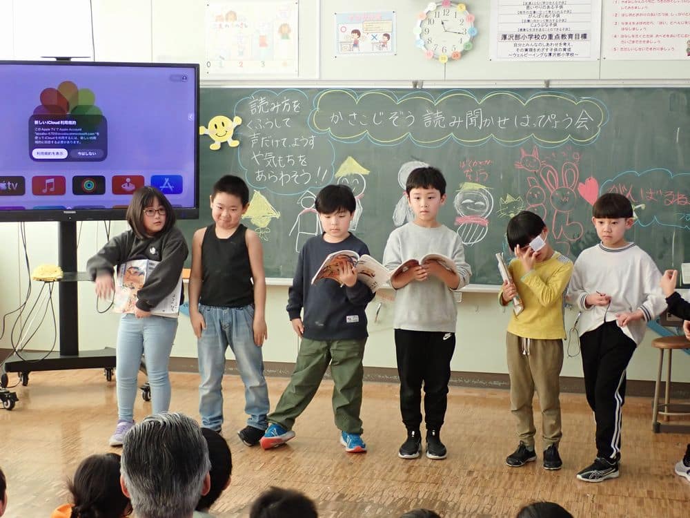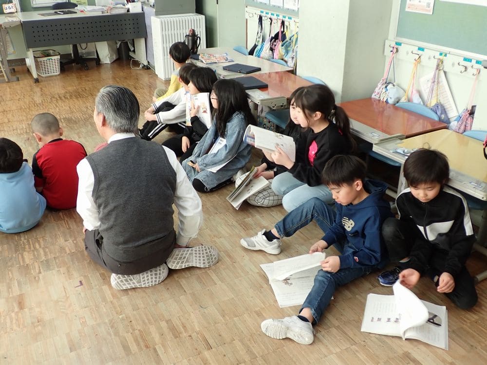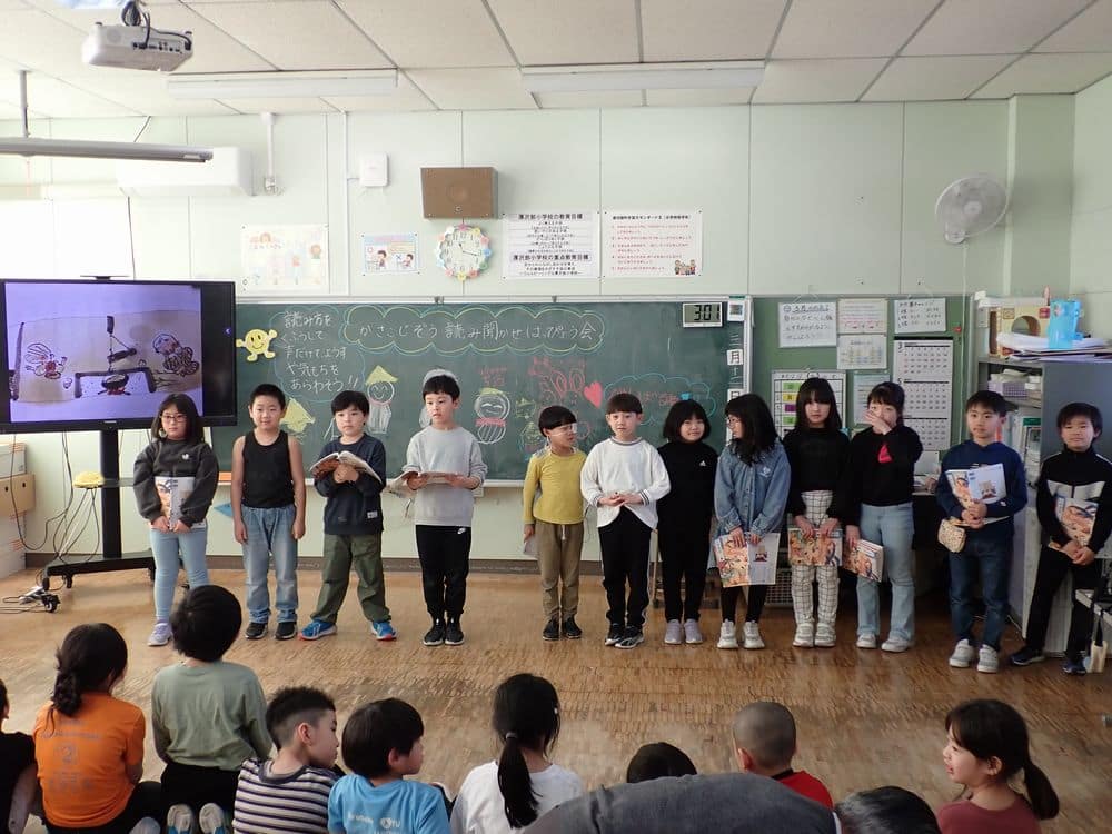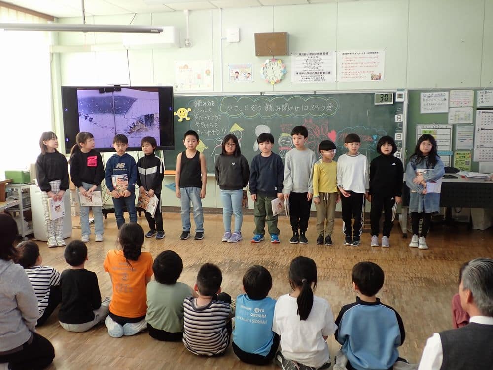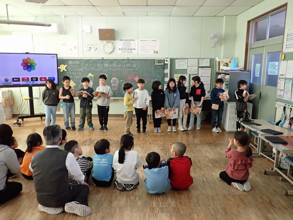 1年生は「ぼくたちも、来年2年生になったら上手に読み聞かせしたいです」などと感想を発表しました。学年を超えた学び合いが、あちらこちらで開催されています。