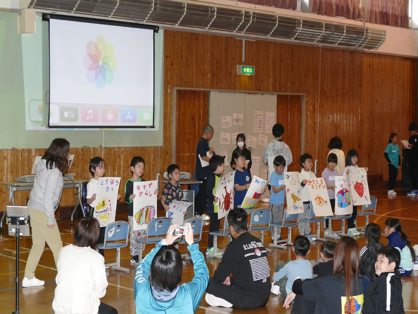 4月28日月曜日の2時間目から中休みにかけて、タイトルの行事が行われました。児童会の企画運営によるものです。各学年のだしもの、そして縦割り班対抗勝ち抜きじゃんけん大会と、1年生はもちろん全校児童そして先生方も笑顔はじける「こどもまんなか」の楽しい集会となりました。まずは写真で速報をお届けします。
