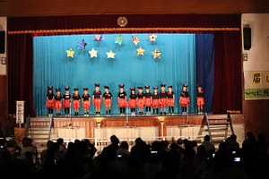 先日行われた学習発表会の様子です。まずは、1年生です。 はじめのことば ジャンボリミッキー 他